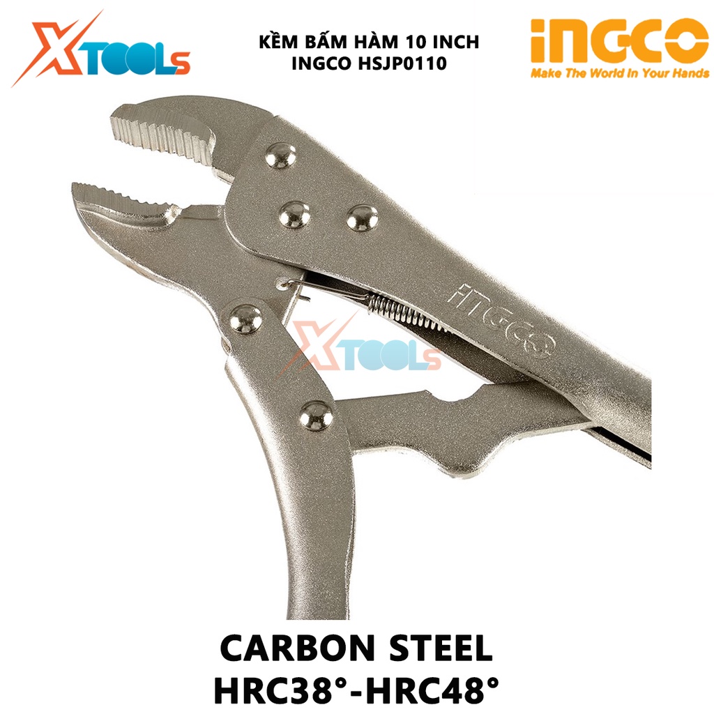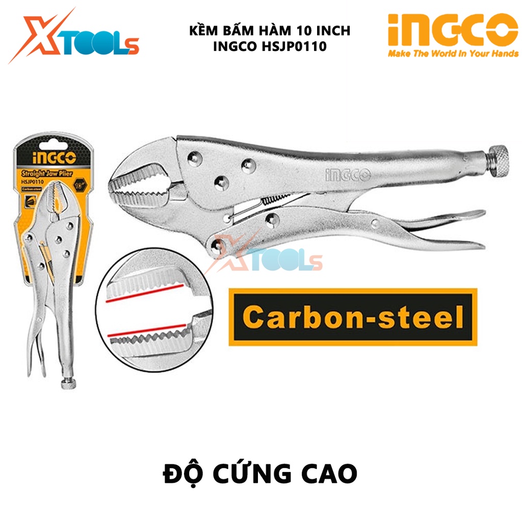 Kìm bấm hàm INGCO HSJP0110 | kiềm chết size 10inch dùng chất liệu thép Cr-V, mạ Niken 30/T, kìm được sử dụng để cắt, kẹp