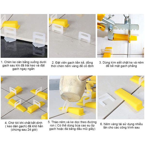 Kìm Bấm Ke Lát Gạch - Dụng Cụ Ốp Lát- Đầu kìm bấm ke có thanh chắn kim loại giúp điều chỉnh khoảng cách phù hợp với độ dài của nêm cần siết. Đầu thanh kim loại có bọc nhựa để khi tỳ vào nền gạch siết ke không bị trầy nền. Đi cùng với đó là một thanh sắt ngang có các nấc điều chỉnh độ xa gần phù hợp với từng đặc điểm của sàn lát. Hai bộ phận này giúp người thợ căn chỉnh sao cho phù hợp với chiều dài của ke hay nêm cân bằng gạch.