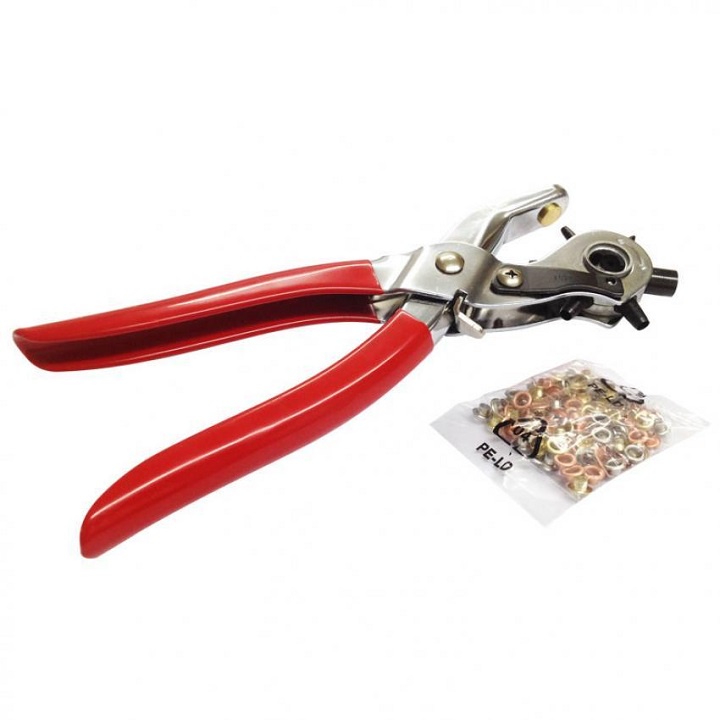 - Bấm được các kích cỡ: 1.5mm, 2mm, 3mm, 3.5mm, 4mm, 1 lỗ bấm khoen
