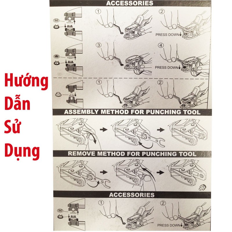 - Công dụng: bấm lỗ dây da, simili, giấy…bấm khoen, nút bấm