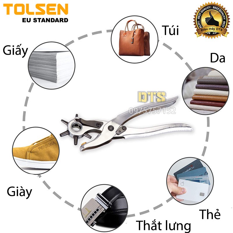 Kìm bấm lỗ Tolsen, bấm dây da đồng hồ, thắt lưng, giày dép, bìa cứng – Kềm bấm lỗ loại 6 size 6 lỗ - Tiêu chuẩn Châu Âu