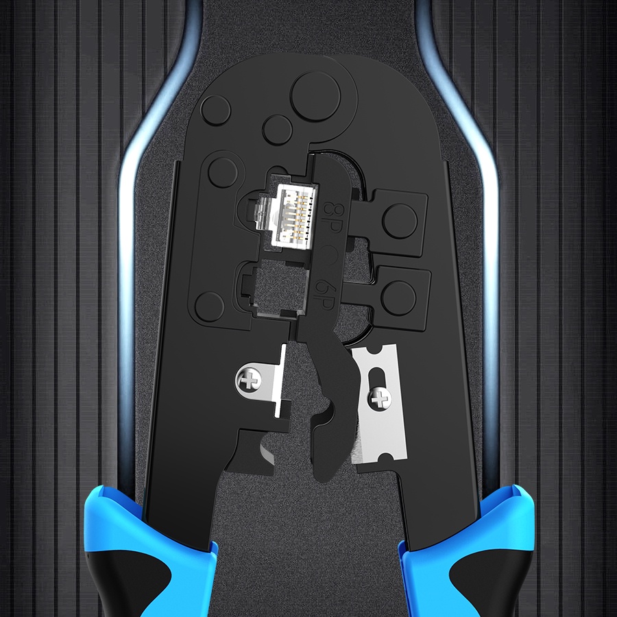 - Tương thích rộng rãi với các phích cắm mô-đun 8P8C Ethernet và 6P4C, 6P6C, 6P4C, 6P2C
