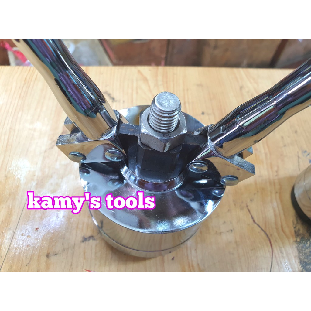 Kamy’s tools chuyên phân phối các loại kìm bấm nút seal thùng phuy hay còn được gọi là dụng cụ bấm nút seal thùng phuy, kìm bấm seal thùng phuy, kìm kẹp nút seal thùng phuy, kìm bấm nắp seal thùng phuy, là bộ dụng cụ dùng để bấm nắp seal niêm phong thùng phuy gồm 2 cây lớn nhỏ để bấm nút seal cho thùng phuy sắt lớn và nhỏ thường được sử dụng để đựng các loại hóa chất, xăng dầu. Kìm bấm nút seal thùng phuy 1 bộ 2 cây có tổng chiều dài là 380mm với chiều dài cán tay cầm là 300mm. Tổng trọng của kìm bấm nút seal thùng phuy 1 bộ 2 cây là khoảng 4.9kg và có tổng cộng 16 răng để kẹp đường kính nắp lớn là 67m và đường kính kẹp nắp nhỏ là 33mm. Kìm bấm nút seal thùng phuy 1 bộ 2 cây được chế tạo bằng hợp kim thép được mạ bóng giúp dụng cụ chống gỉ sét sử dụng được lâu dài. Kìm bấm nút seal thùng phuy 1 bộ 2 cây được thiết kế hoạt động dưới dạng cộng lực giúp cho ta thao tác và làm việc sẽ trở nên nhẹ nhàng hơn bao giờ hết. Ngoài ra Kìm bấm nút seal thùng phuy 1 bộ 2 cây còn có thể tăng đơ độ kẹp của ngàm lớn nhỏ giúp cho ta dễ dàng điều chỉnh được miệng ngậm nút seal thùng phuy chắc hơn khi sử dụng. hãy liên hệ với kamy’s tools để biết thêm thông tin chi tiết sản phẩm Kìm bấm nút seal thùng phuy 1 bộ 2 cây .Giá ROND