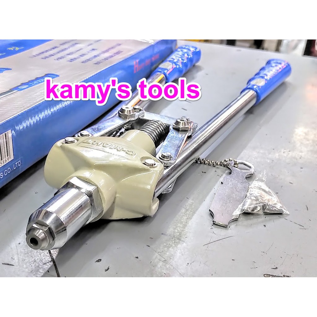 Kamy’s tools chuyên phân phối các loại Kìm bấm rút rive cộng lực là một loại dụng cụ cầm tay chuyên dùng để bấm rút các loại rive với nhiều đường kính lớn nhỏ khác nhau với thiết kế cộng lực giảm thiểu cảm giác nặng tay khi bấm vì nhờ vào cơ chế cộng lực. Trong đó có Kìm bấm rút rive cộng lực cmart cao cấp C0022 dài 430mm với thương hiệu cmart nổi tiếng chuyên sản xuất các công cụ dụng cụ thi công với chất lượng cao với model c0022 có chiều dài toàn thân là 430mm. Kìm bấm rút rive cộng lực cmart cao cấp C0022 dài 430mm bao gồm 4 lỗ rút bấm rive thông dụng là 2.8mm, 3.2mm, 4mm, 4.8mm với trọng lượng nhẹ dễ dàng mang đi theo và làm việc lâu dài mà không bị mỏi tay với cán kìm được bọc cao su chắc chắn không trơn trượt. Kìm bấm rút rive cộng lực cmart cao cấp C0022 dài 430mm có thể dễ dàng thay đổi các size bấm rút rive bằng cờ lê được tặng kèm theo để tháo mở một cách dễ dàng. Hãy liên hệ với kamy’s tools để biết thêm thông thi chi tiết sản phẩm kìm bấm rút rive cộng lực cmart cao cấp C0022 dài 430mm.Giá WHALE