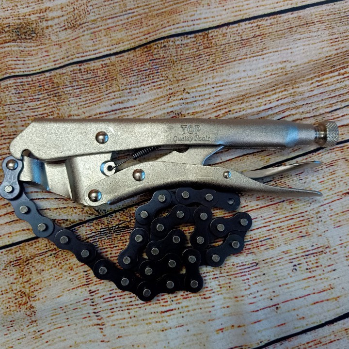 Kìm bấm xích là công cụ dụng cụ dùng để cố định quấn quanh ống hoặc tuýp sắt.