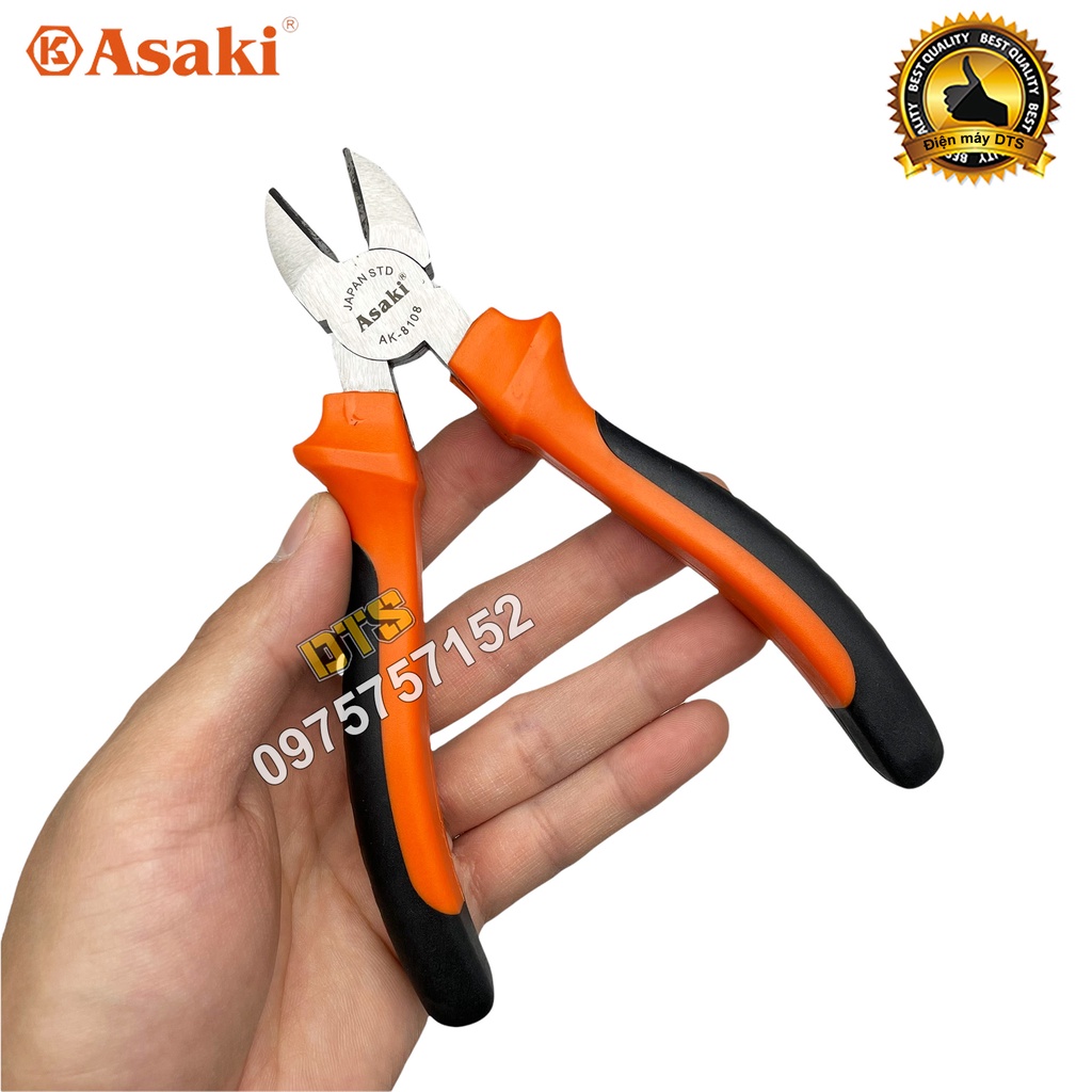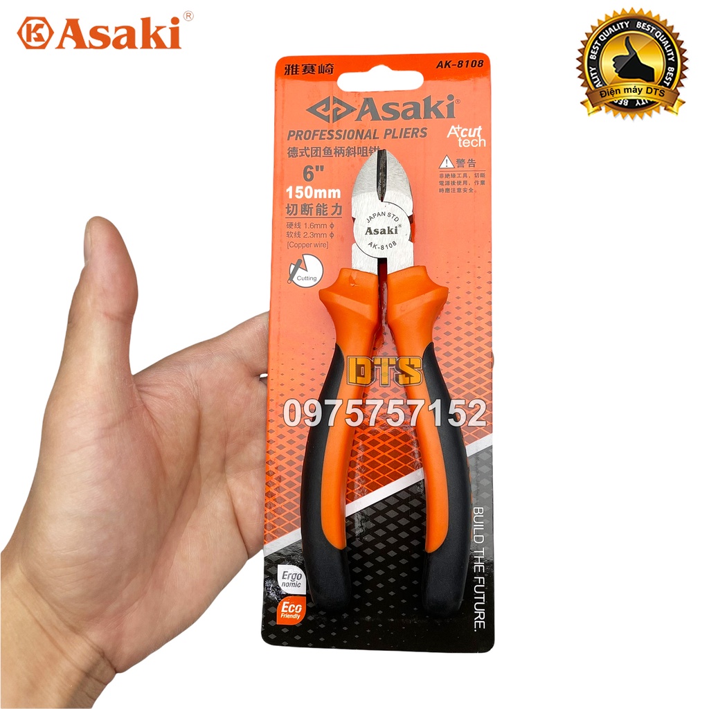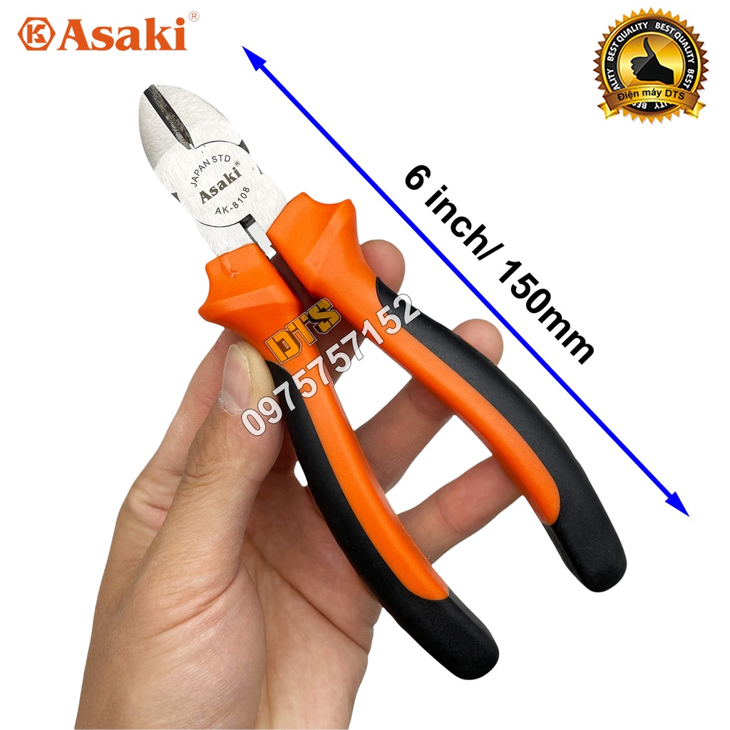 Kìm cắt 6 inch kiểu Đức Asaki, kềm cắt đa năng A+cut Tech thép CR-V siêu cứng chống gỉ sét, cắt dây điện sắt kim loại