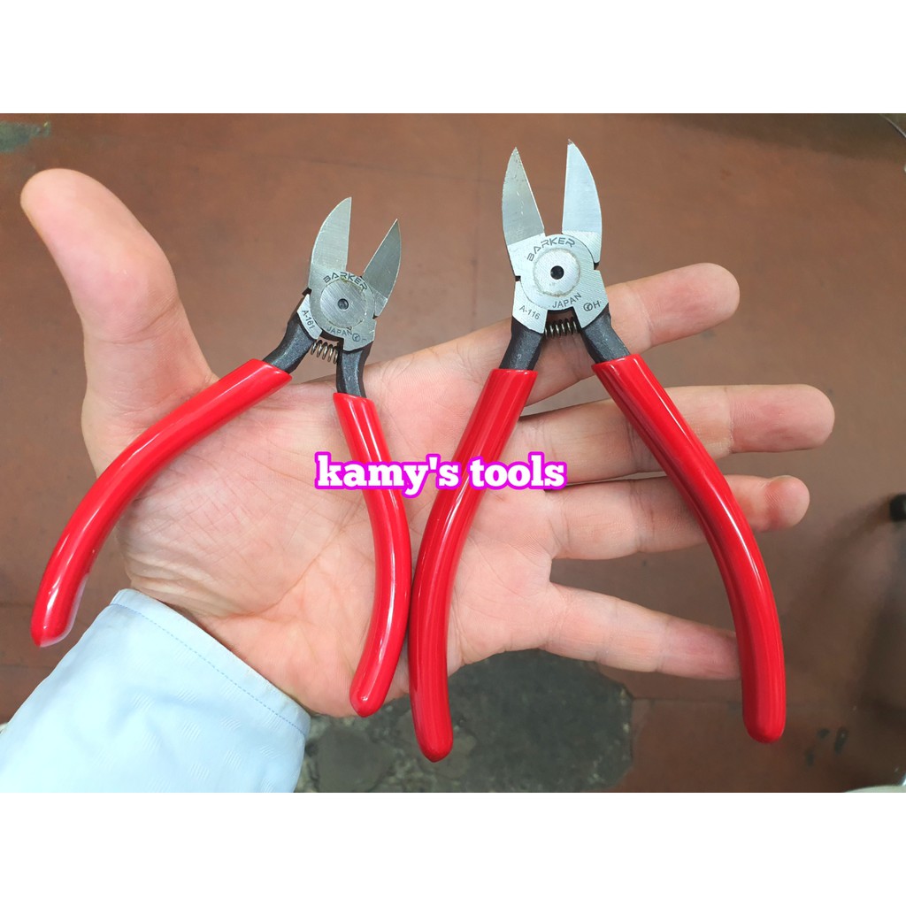 Kìm cắt Barker 5 inch A-161 và 6 inch A-116 là 2 model kìm cắt cáp với thương hiệu Barker nổi tiếng chuyên dùng để cắt các chi tiết nhựa, dây nhựa, các linh kiện điện tử máy móc cơ khí.Kìm cắt Barker 5 inch A-161 có chiều dài 126mm và 6 inch model A-116 có chiều dài là 150mm với phần đầu kìm, đặc biệt là phần lưõi dao được mài sắc bén mỏng cho cảm giác cắt các chi tiết nhựa chắc chắn không để lại ba dớ sau khi cắt. Vết cắt dứt khoát nhẵn mịn và đẹp hơn so với các loại kìm có thiết kế lưỡi dao dày.