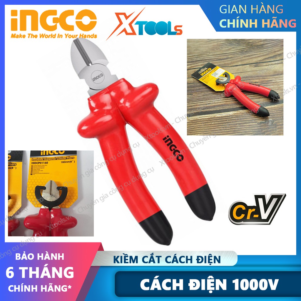 Kìm cắt cách điện 1000V INGCO 6inch kềm cắt cách điện thép C-rV siêu bền cứng cắt tuốt dây điện kháng điện cao thế 1kV
