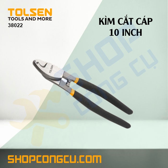 Kìm cắt cáp 10 inch Tolsen 38022===============================THÔNG TIN SẢN PHẨM• Chứng nhận CE cho xuất khẩu châu âu.• Dành cho công nghiệp nặng• Chất liệu thép carbon rèn• Tay cầm bằng nhung• Kíc...- Giao hàng toàn quốc