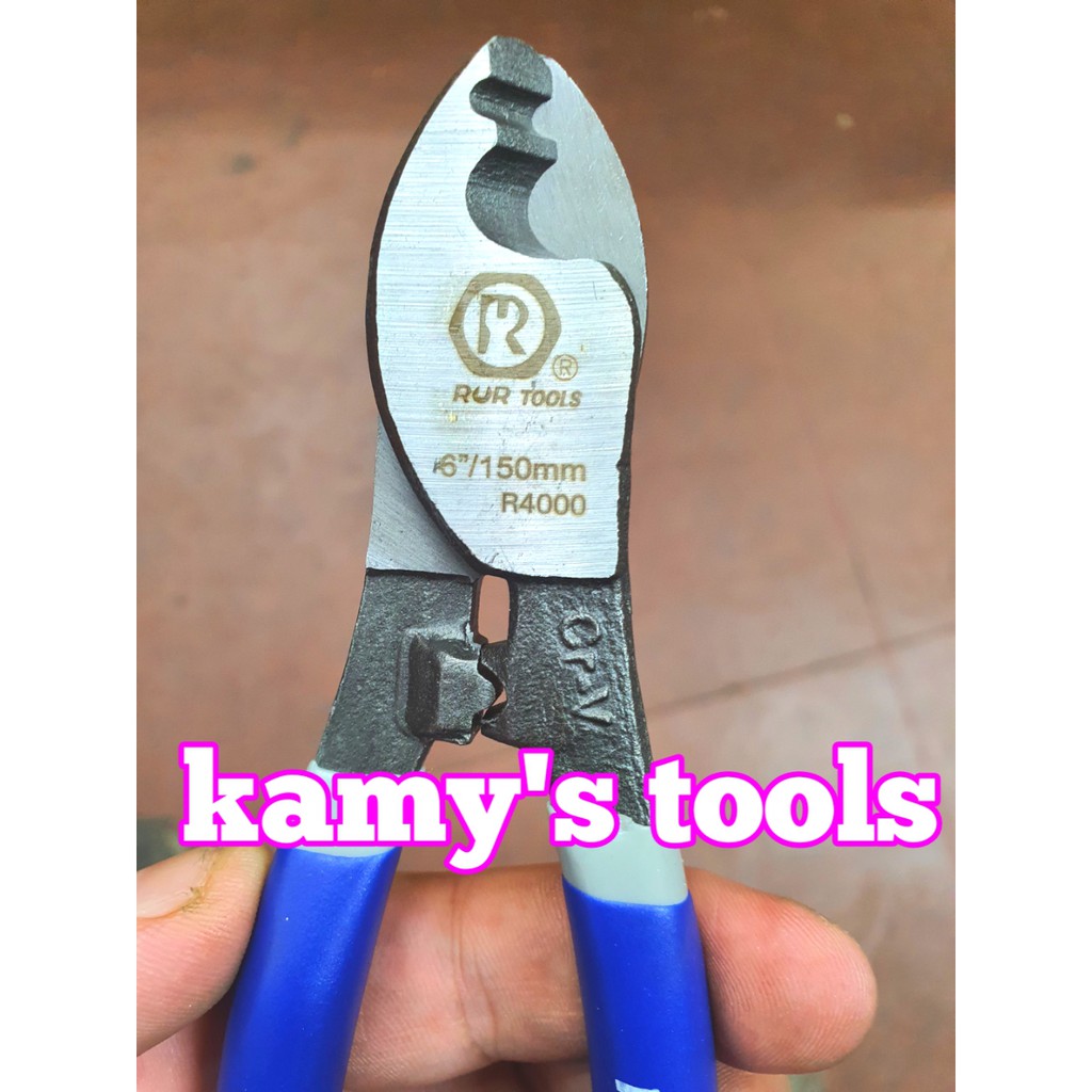 Kìm cắt cáp 6 inch Rur R4000 thương hiệu Rur tools nổi tiếng sản xuất các công cụ dụng cụ cầm tay chất lượng cao có chiều dài là 150mm được gia công bằng hợp kim thép cr-v được tôi luyện nhiệt độ cao giúp cho độ cứng của thép đặc biệt là phần lưỡi cắt có sắc bén chuyên cắt các loại dây điện, cáp điện lõi đồng.Giá FABIENNE