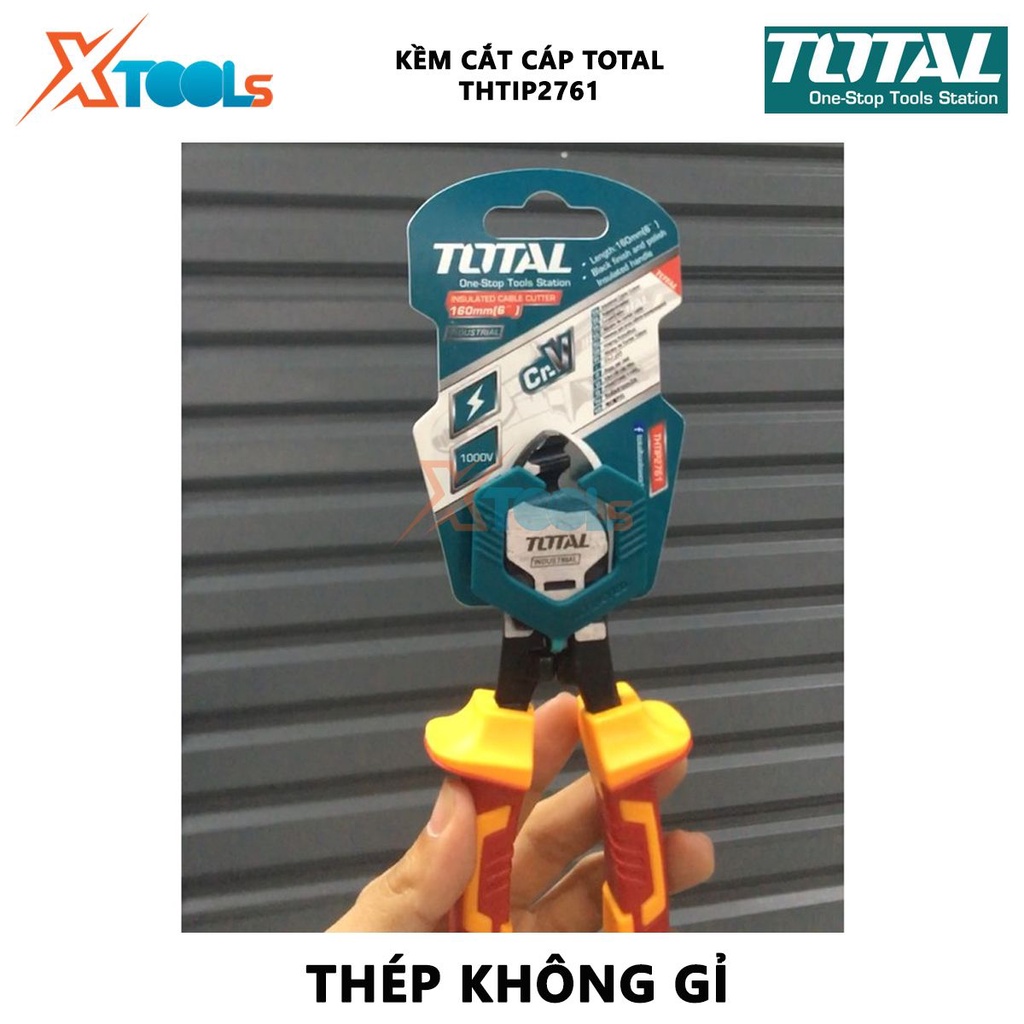 Nhà cửa & Đời sống > Dụng cụ & Thiết bị tiện ích > Dụng cụ > Kìm || Kìm cắt cáp cách điện TOTAL THTIP2761 | Kềm cách điện Kích thước: 6"/ 160mm, Đầu kềm được mạ đen và đánh bóng, Tay cầm cCòn hàng