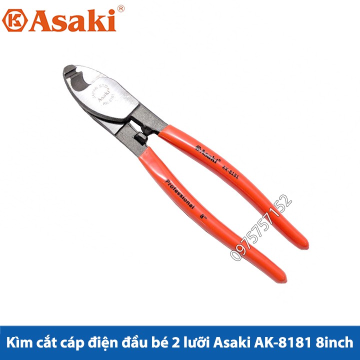 Kìm cắt cáp điện đồng, nhôm đầu bé/đầu lớn 2 lưỡi kỹ thuật Asaki 6inh, 8inch, 10inch (Hãng phân phối chính thức)