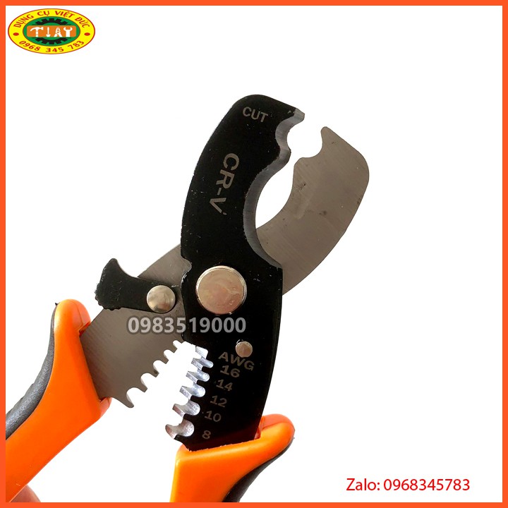 Kìm có khả năng tuốt vỏ nhiều loại dây có kích thước khác nhau bao gồm dây cỡ AWG: 8, 10, 12, 14