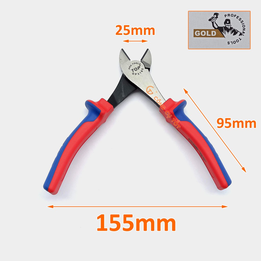 Kìm cắt chéo cao cấp TOPGOLD 160mm GP3160Vật liệu: Thép hợp kim CRV cao cấp