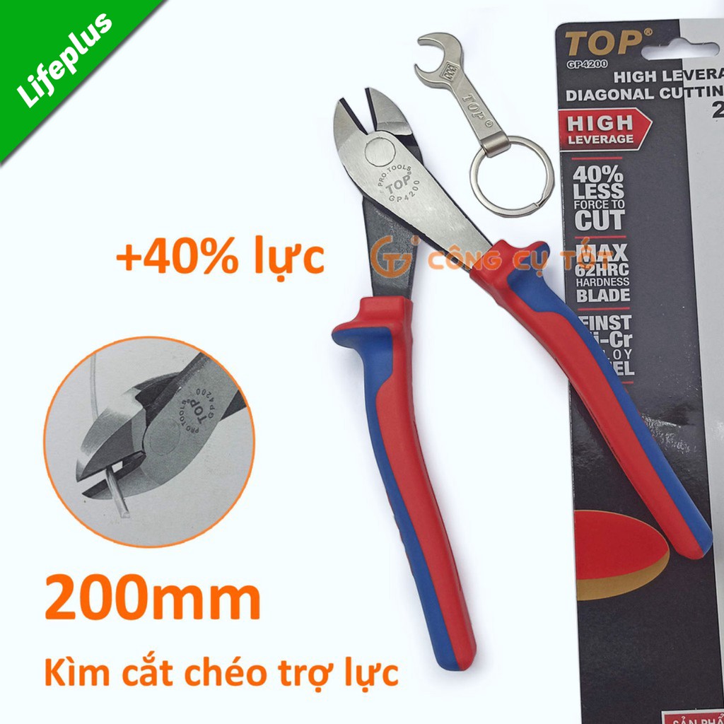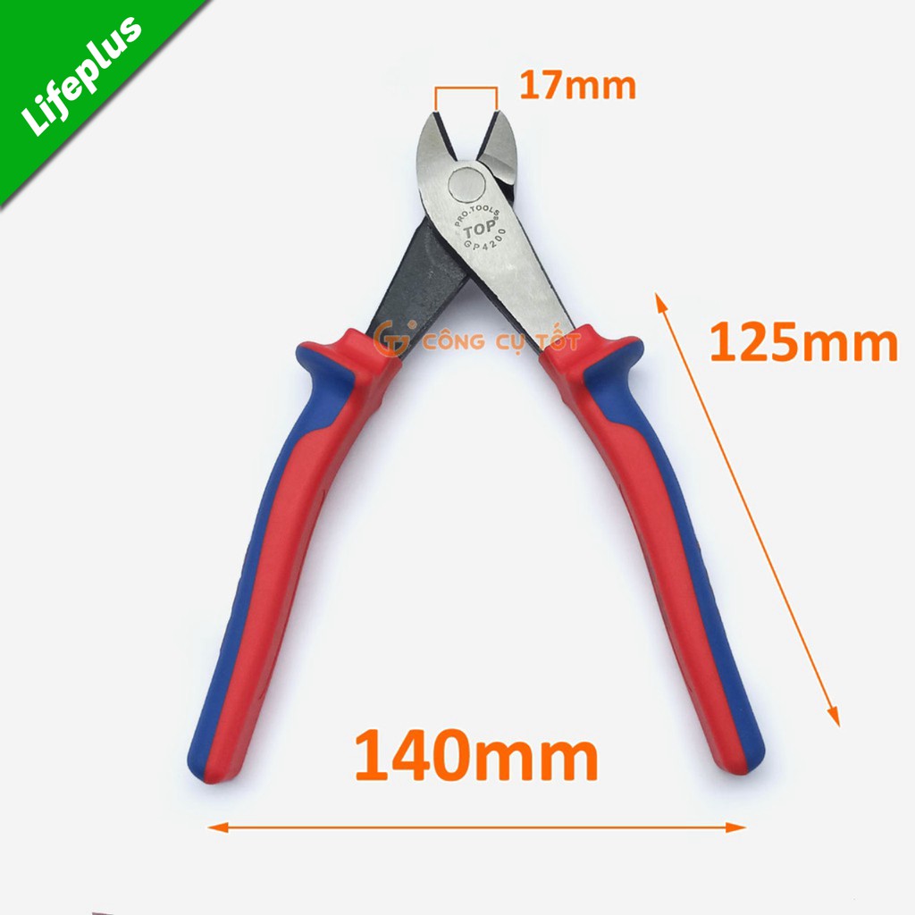 Nhà cửa & Đời sống > Dụng cụ & Thiết bị tiện ích > Dụng cụ > Kìm || Kìm cắt chéo cao cấp TopGold 200mm trợ lực bằng trục lệch sát lưỡi làm giảm 40% lực cắtCòn hàng