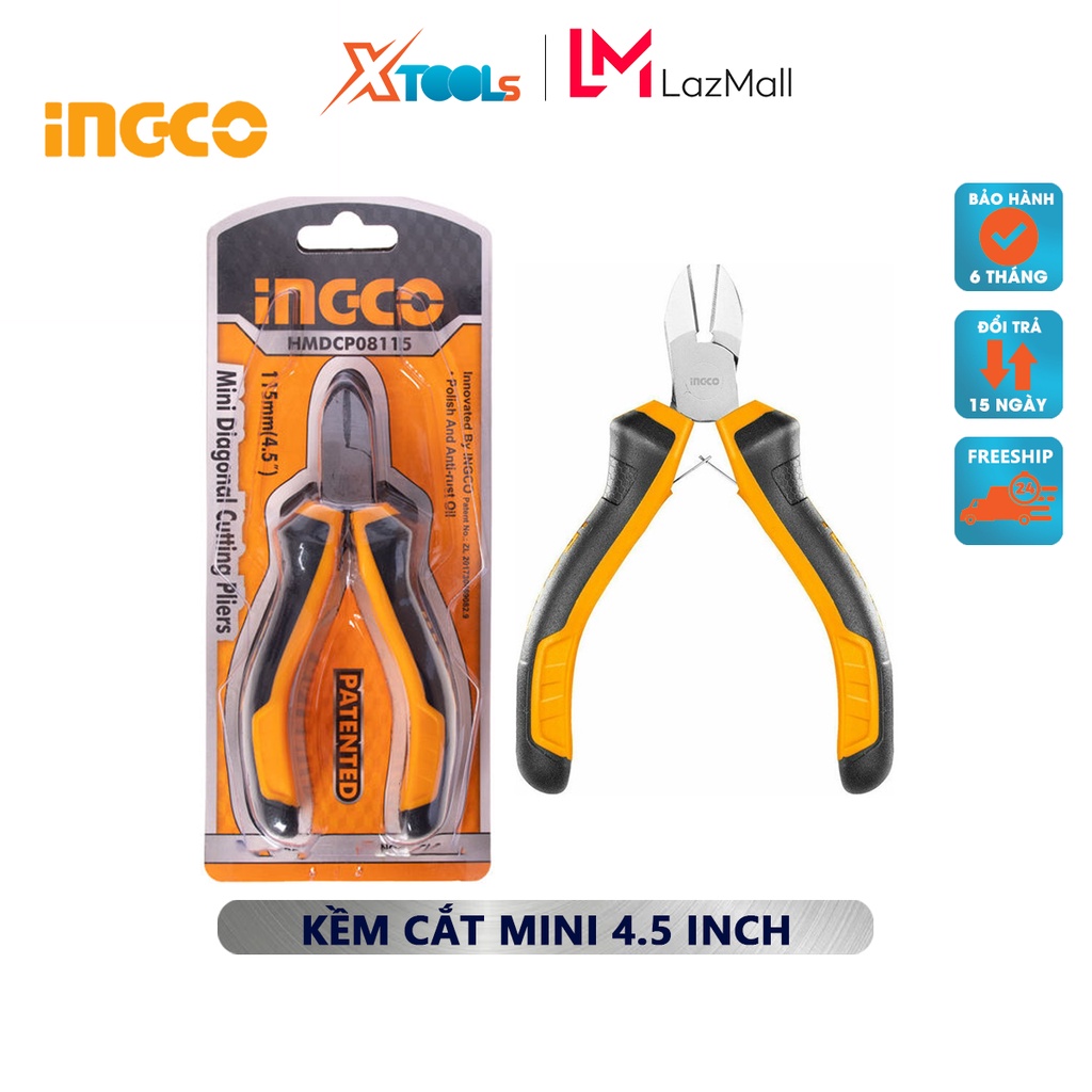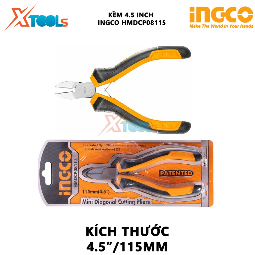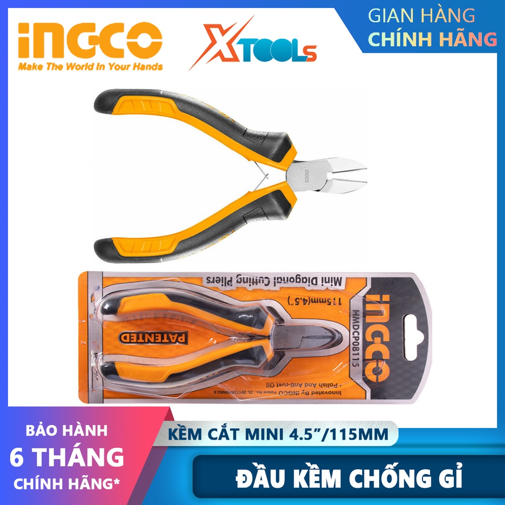 Giới thiệu Kìm cắt chéo mini Ingco HMDCP08115 kềm cắt mini Kích thước 4.5"/ 115mm Đầu kềm được đánh bóng và chống gỉ cắt,sử dụng để