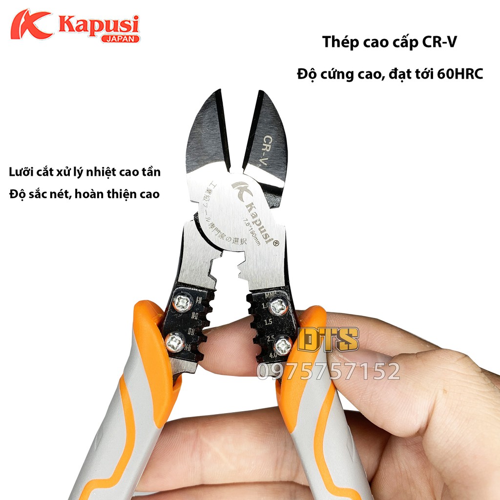 Kìm cắt đa năng công nghiệp Nhật Kapusi JAPAN 7.5inch/ 190mm thép CR-V cao cấp, thiết kế tiên tiến tiết kiệm 30% lực bấm