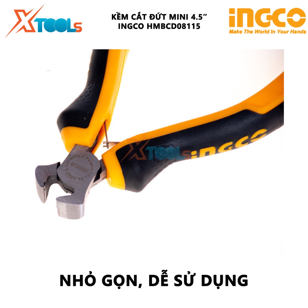 Kìm cắt đầu mini INGCO HMBCD08115 kềm cắt mini Kích thước 4.5"/ 115mm Đầu kềm được đánh bóng và chống gỉ cắt, tuốt dây đ