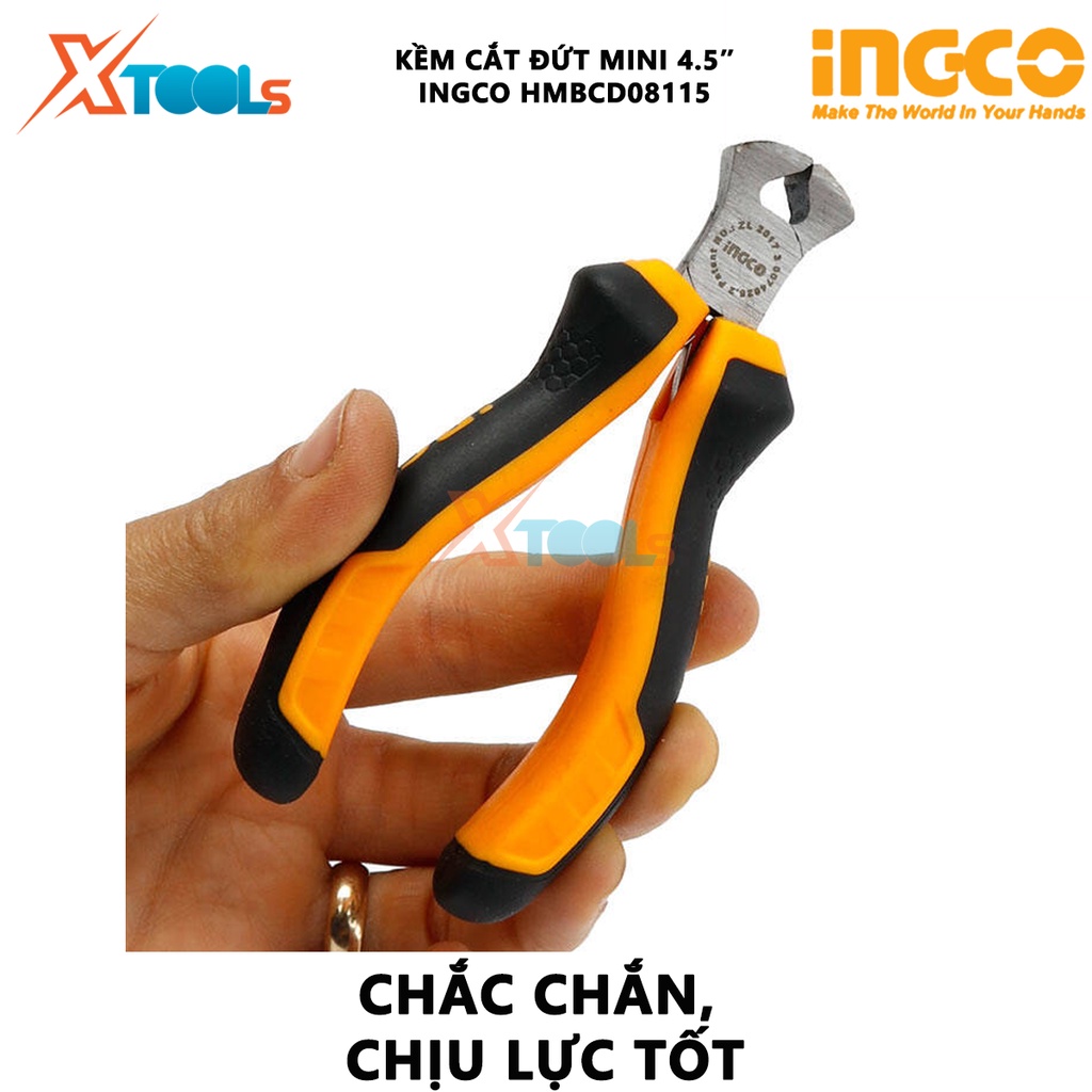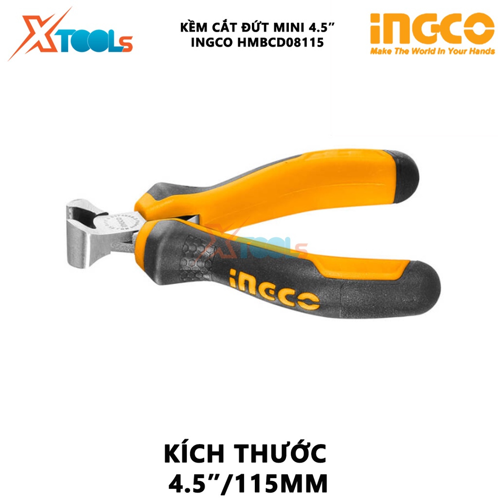 Nhà cửa & Đời sống > Dụng cụ & Thiết bị tiện ích > Dụng cụ > Kìm || Kìm cắt đầu mini INGCO HMBCD08115 kềm cắt mini Kích thước 4.5"/ 115mm Đầu kềm được đánh bóng và chống gỉ cắt, tuốt dây đCòn hàng