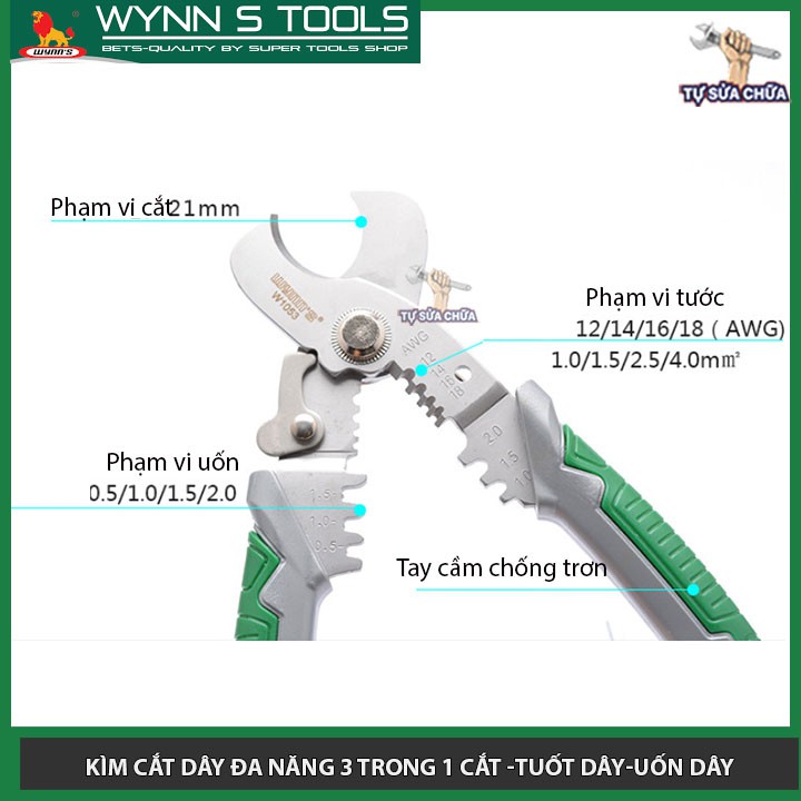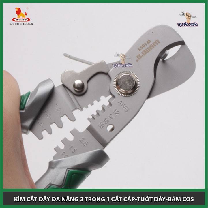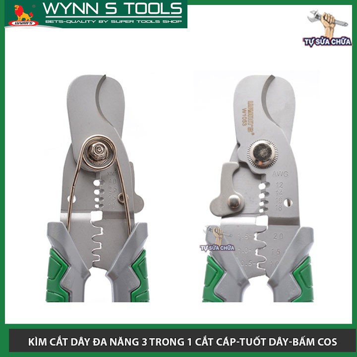 Giới thiệu Kìm cắt dây đa năng cao cấp 3 trong 1 Wynn's 7inch/175mm (Cắt cáp-Tuốt dây-Bấm cos) hàng chính hãng loại xịn