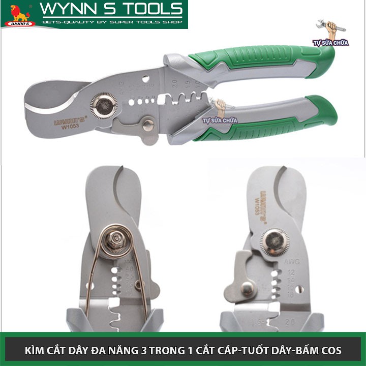 Nhà cửa & Đời sống > Dụng cụ & Thiết bị tiện ích > Dụng cụ > Kìm || Kìm cắt dây đa năng cao cấp 3 trong 1 Wynn's 7inch/175mm (Cắt cáp-Tuốt dây-Bấm cos) hàng chính hãng loại xịnCòn hàng