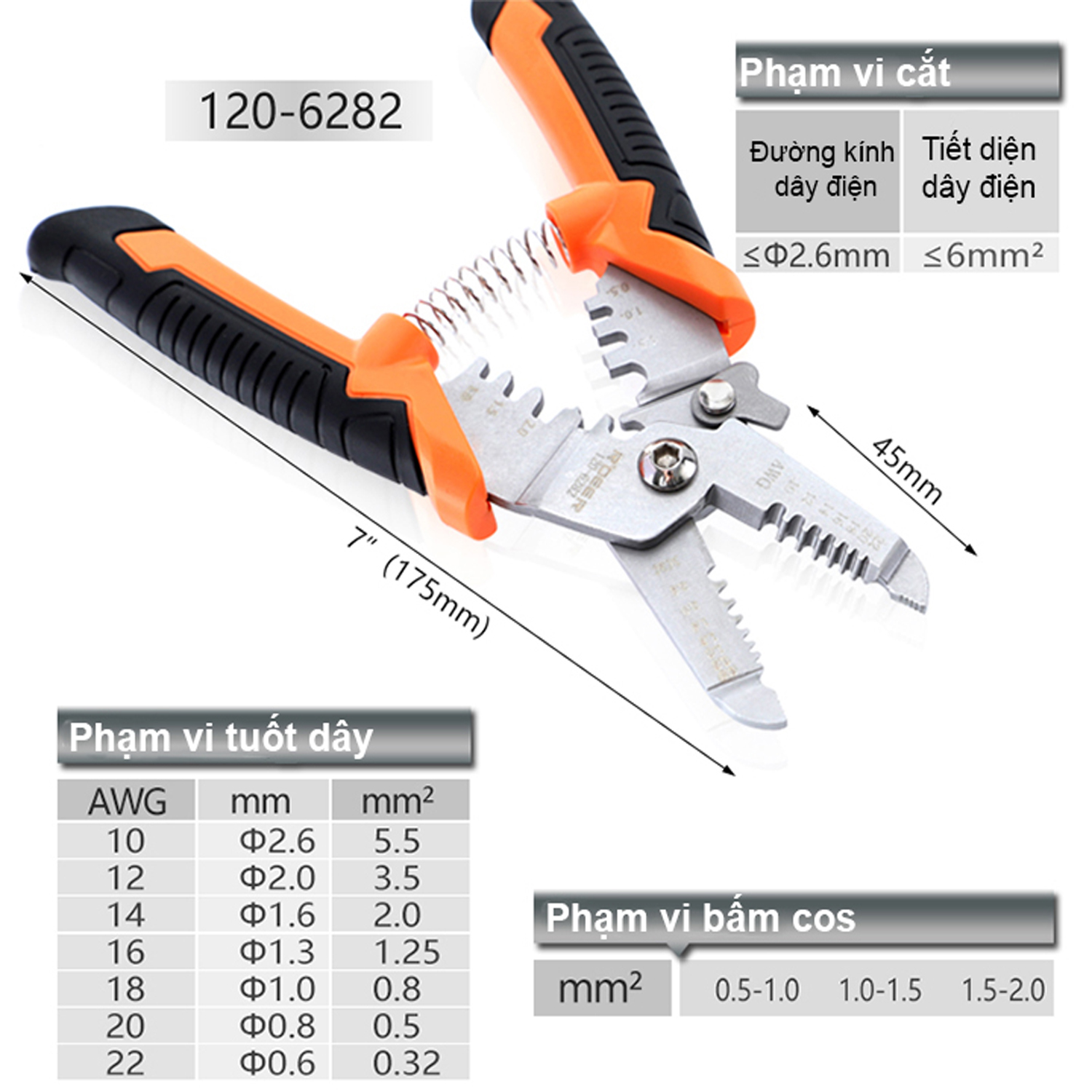 - Công dụng: Cắt cáp điện, tuốt dây, bấm cos