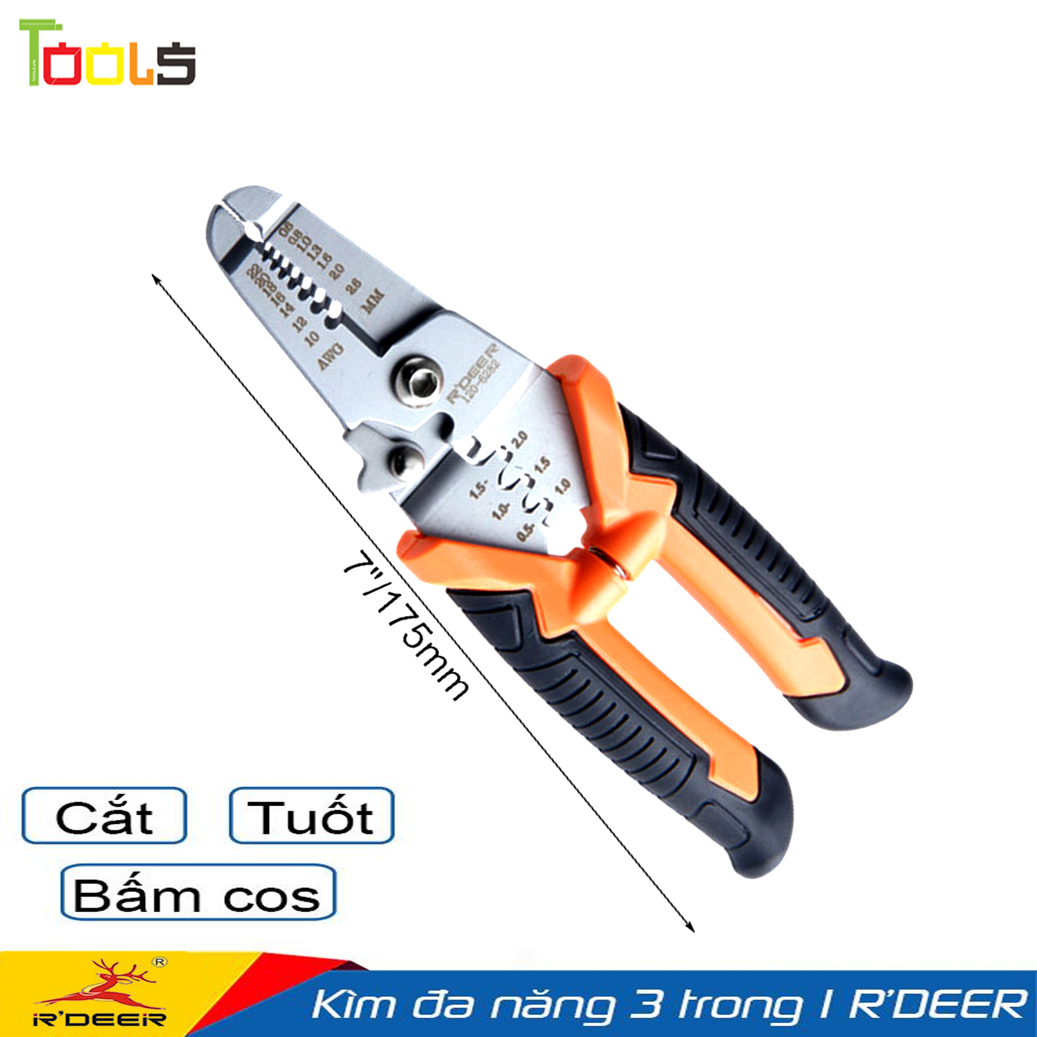 Nhà cửa & Đời sống > Dụng cụ & Thiết bị tiện ích > Dụng cụ > Kìm || Kìm cắt dây đa năng cao cấp 3 trong 1 R'DEER 120-6282 7inch/175mm (Cắt dây-Tuốt dây-Bấm cos)Còn hàng