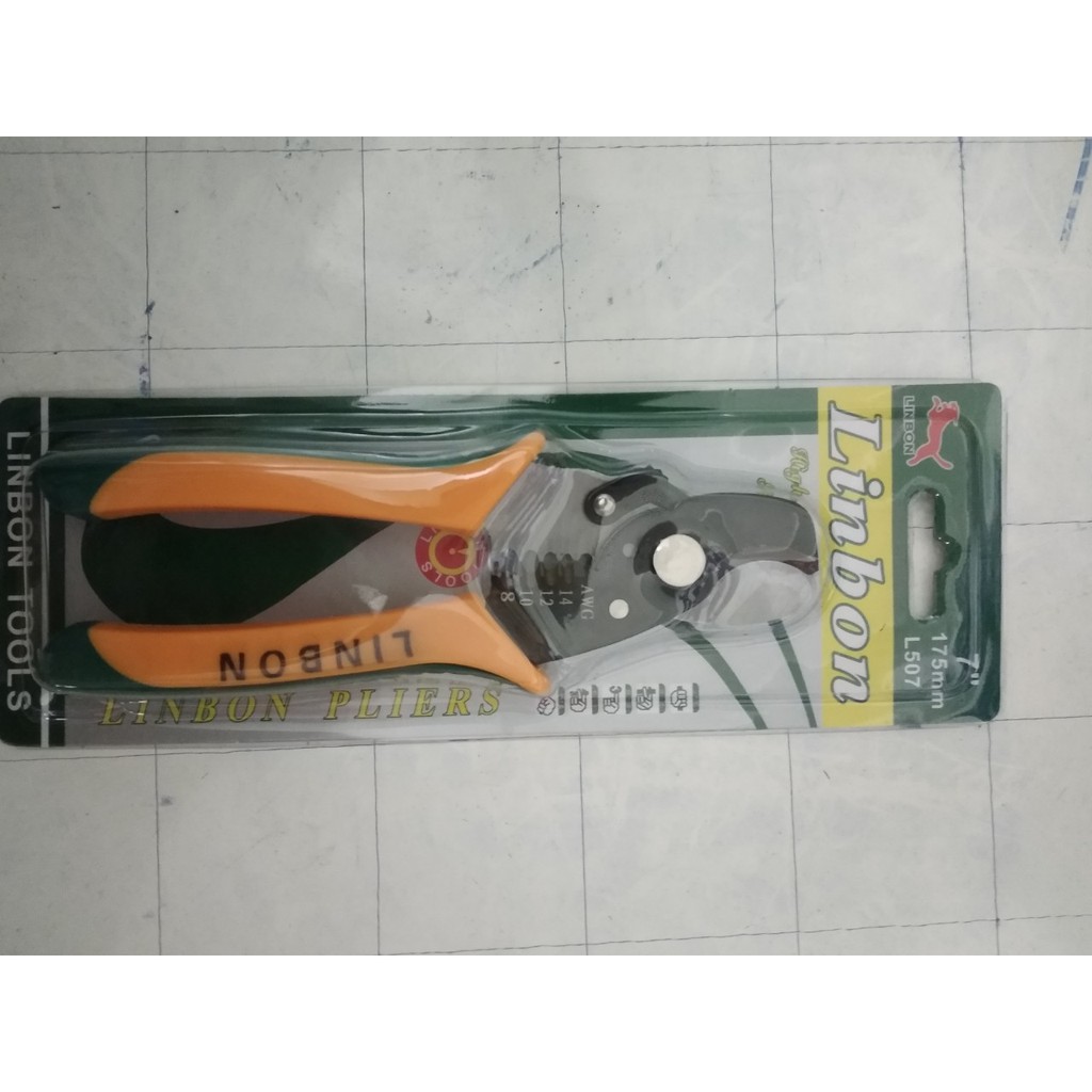 Kìm được chế tạo bằng thép CR-V, có độ cứng cao- Cán kìm được bọc nhựa cao cấp, chống trượt- Thiết kế đa năng, dễ sử dụng- Kích thước: 7” (175mm)- Công dụng: Cắt cáp điện, tuốt dây, bấm cos* Mô tả chi tiết:- Kìm cắt đa năng 3 trong 1 7inch (175mm) thương hiệu lin bonlà dụng cụ được thiết kế rất đa dụng, có thể sử dụng được nhiều chức năng chỉ trên cùng một sản phẩm.- Kìm được chế tạo bằng thép CR-V, có độ cứng cao, chịu lực tốt- Lưỡi kìm cắt sắc, thông số kìm rõ rang, thao tác nhanh- Cán kìm được bọc nhựa cao cấp, cán không bị trơn trượt khi tay có mồ hôi. Các tính năng của sản phẩm:- Cắt dây cáp có đường kính vỏ <16mm- Tuốt dây có đường kính: 1mm; 1.5mm; 2.5mm; 4mm- Bấm cos đường kính: 0.5-1mm2; 1-1.5mm2; 1.5-2mm2Giá SBR