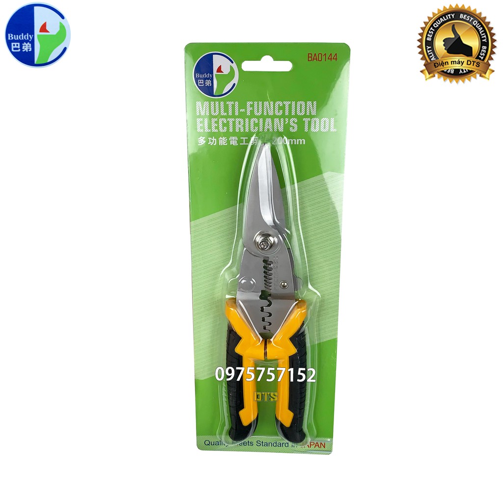 Kìm cắt dây đa năng cao cấp Nhật Bản 3 trong 1 Buddy BA0144 8inch/200mm (Cắt cáp-Tuốt dây-Bấm cos) - Standard JAPAN