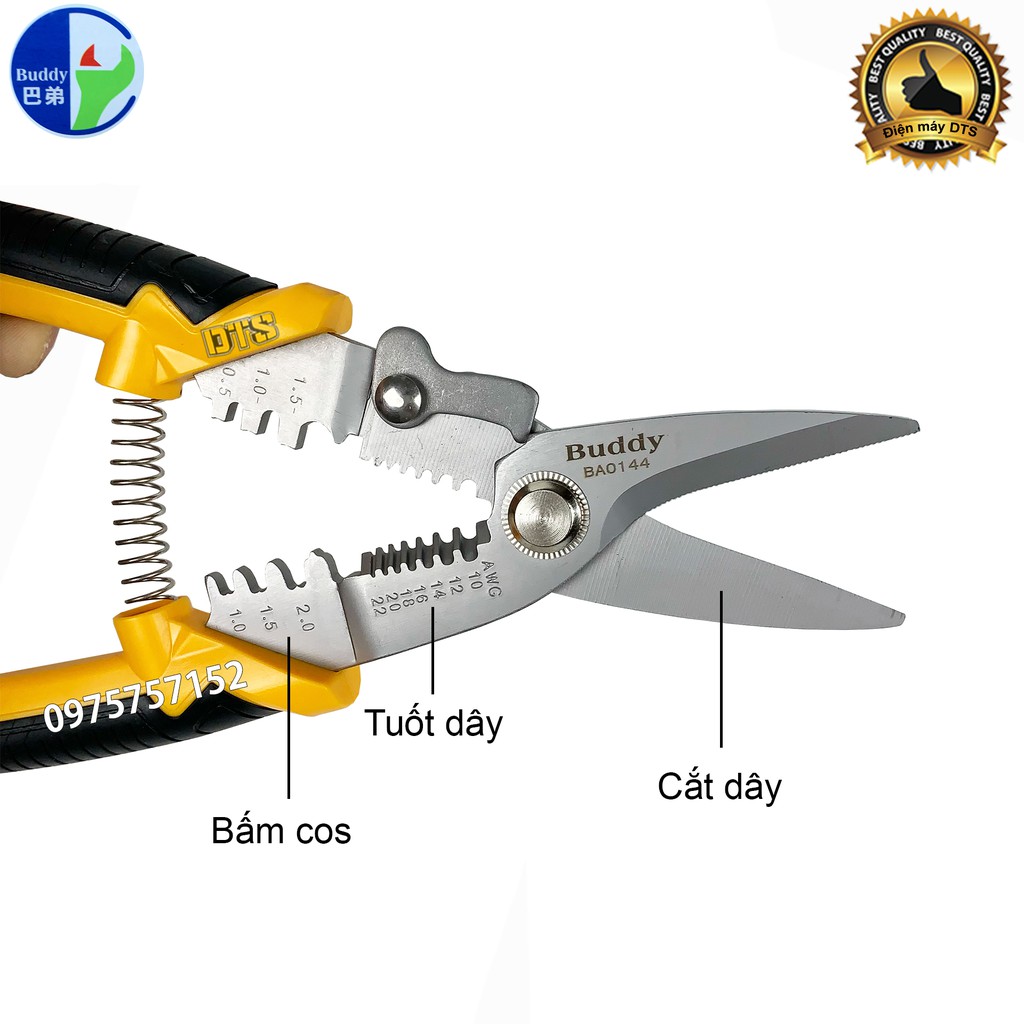 Kìm đa năng Buddy 3 trong 1 chỉ một kìm nhưng đem lại cho chúng ta 3 chức năng: cắt - tuốt - bấm cos. Với chiếc kìm đa năng chúng ta sẽ làm việc một cách chuyên nghiệp hơn, nhanh hơn, tiết kiệm thời gian cũng như chi phí.Đặc biệt: Là một trong những thương hiệu được sản xuất trên công nghệ Nhật Bản nên luôn đem lại sự tối ưu cho người dùng