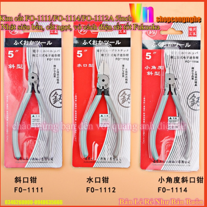 Kìm cắt FO-1111/FO-1114/FO-1112A 5inch Nhật siêu bền, cắt ngọt, vỏ cách điện rất tốt Fukuoka