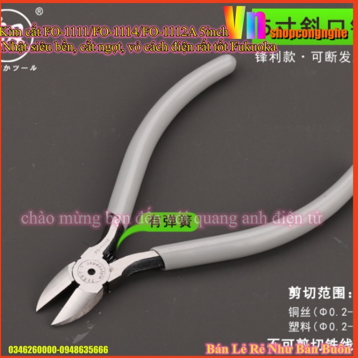 Kìm cắt FO-1111/FO-1111A/FO-1112/FO1114 5inch Nhật siêu bền, cắt ngọt, vỏ cách điện rất tốt FukuokaKìm cắt 5inch Nhật siêu bền