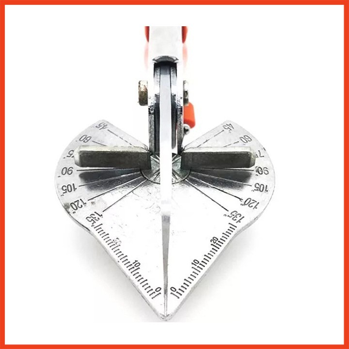Kéo cắt góc điều chỉnh cho phép cắt ghép máng luồng dây điện, ống gel,nhựa PVC với các góc cắt từ 45° đến 135° .Kéo cắt góc được làm từ hợp kim chống gỉ,chắc chắn, bền khỏe ,tay cầm có bọc nhựa chống trượt .Trong công việc, rất nhiều khi ta cần cắt một góc xác định. Sử dụng bút, kéo và một thước đo góc đôi khi lại rườm rà trong một số tình huống cần cắt liên tục như cắt góc để đi ống máng ghen dây điện, cắt góc nẹp gỗ nẹp nhựa khi làm trần phào...Kìm cắt góc với cấu tạo một lưỡi dao và một mặt đỡ chia độ là sự tổ hợp các dụng cụ rời rạc đã nói lại với nhau, tạo ra một dụng cụ mới tiết kiệm thời gian rất nhiều mà độ chính xác lại cao.
