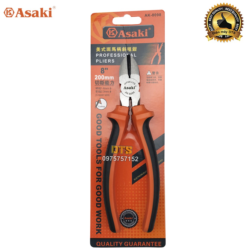 Nhà cửa & Đời sống > Dụng cụ & Thiết bị tiện ích > Dụng cụ > Kìm || Kìm cắt kiểu Mỹ Asaki A+cut Tech 8 inch/ 200mm, thép High Carbon độ cứng caoCòn hàng