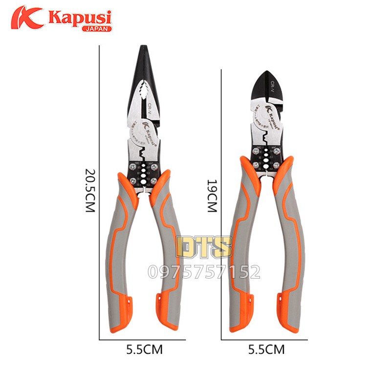 Bộ Kìm cắt - Kìm nhọn, kìm đa năng công nghiệp Nhật Kapusi JAPAN thép CR-V cao cấp, thiết kế tiên tiến tiết kiệm 30%