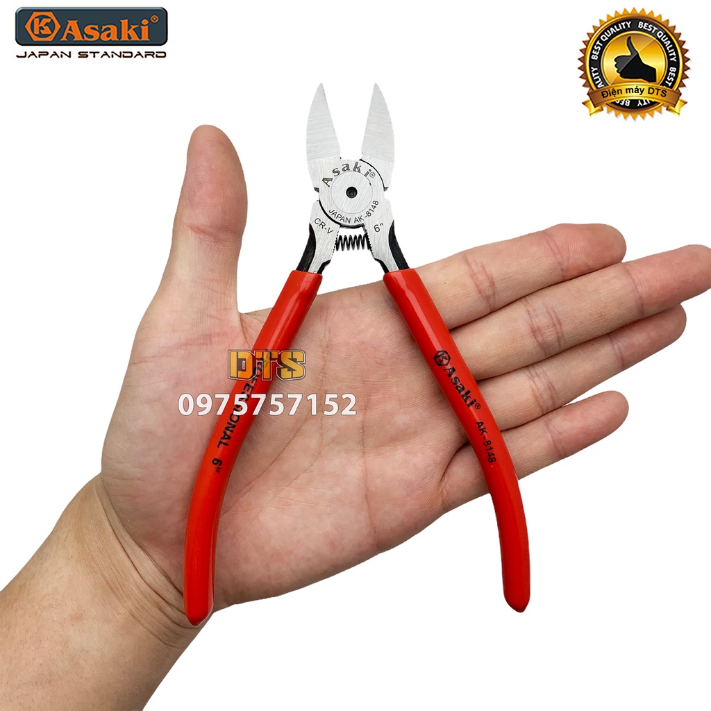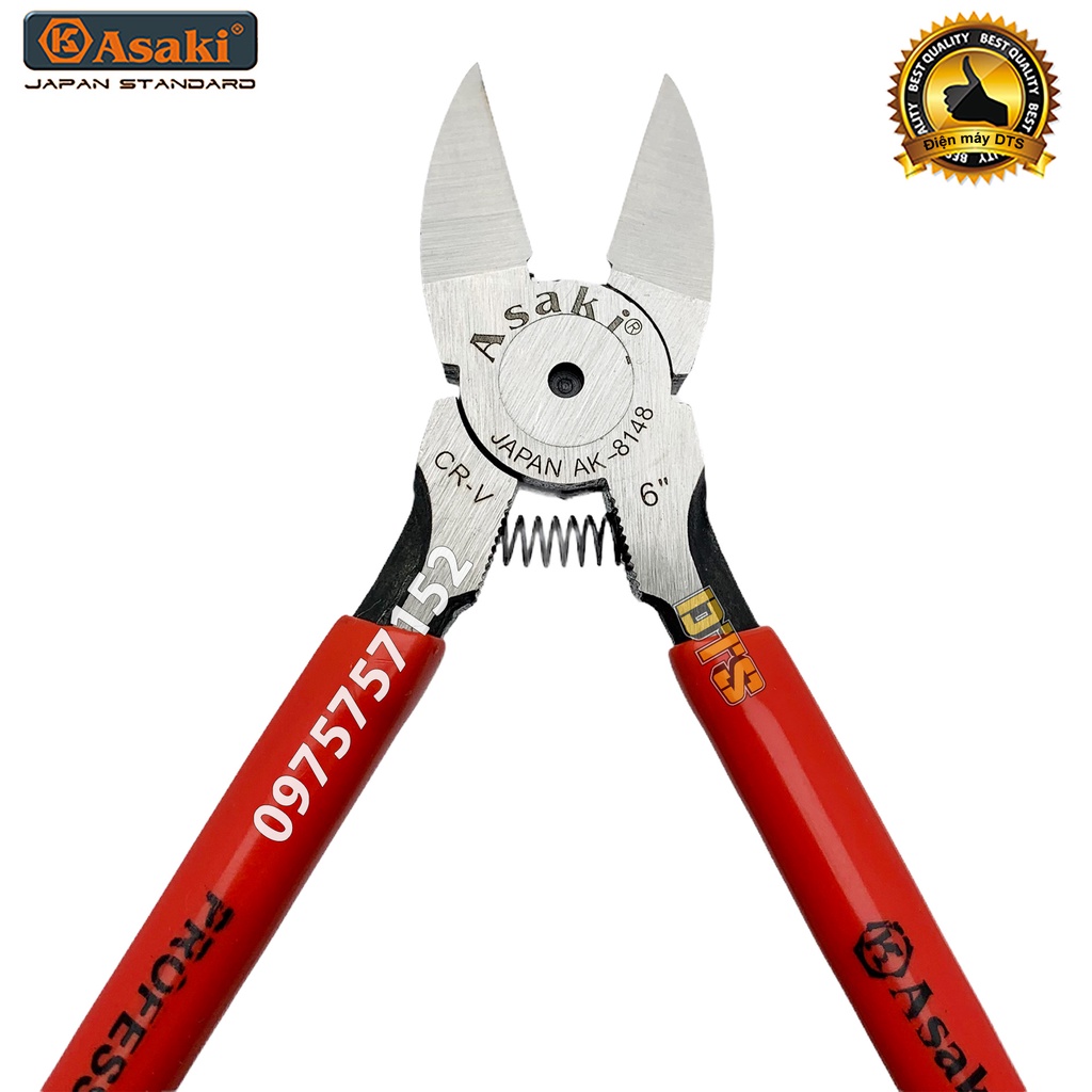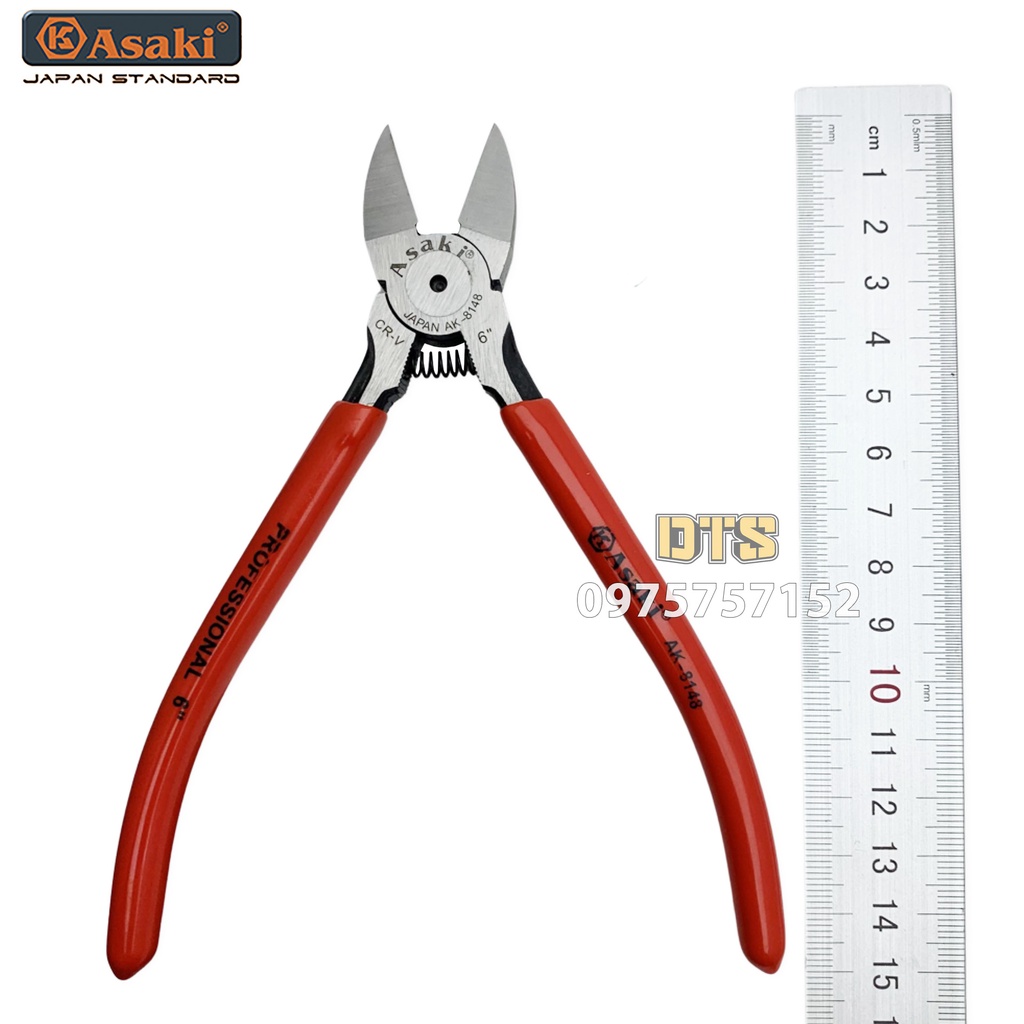 Kìm cắt kỹ thuật 6 inch Asaki JAPAN AK-8148 160mm, kềm cắt dây điện, kìm cắt nhựa bavia, lưỡi cắt nhọn vát mỏng, sắc bén