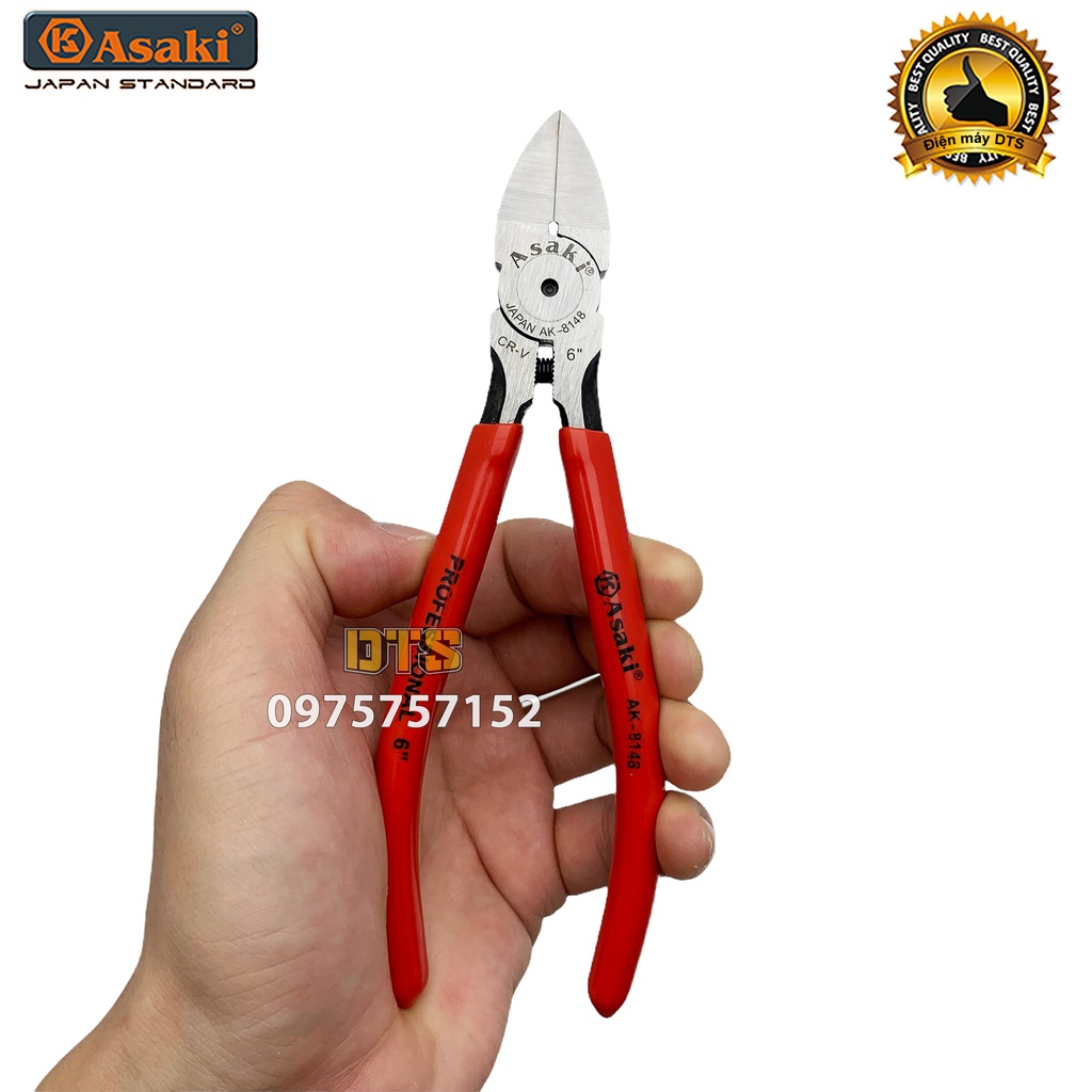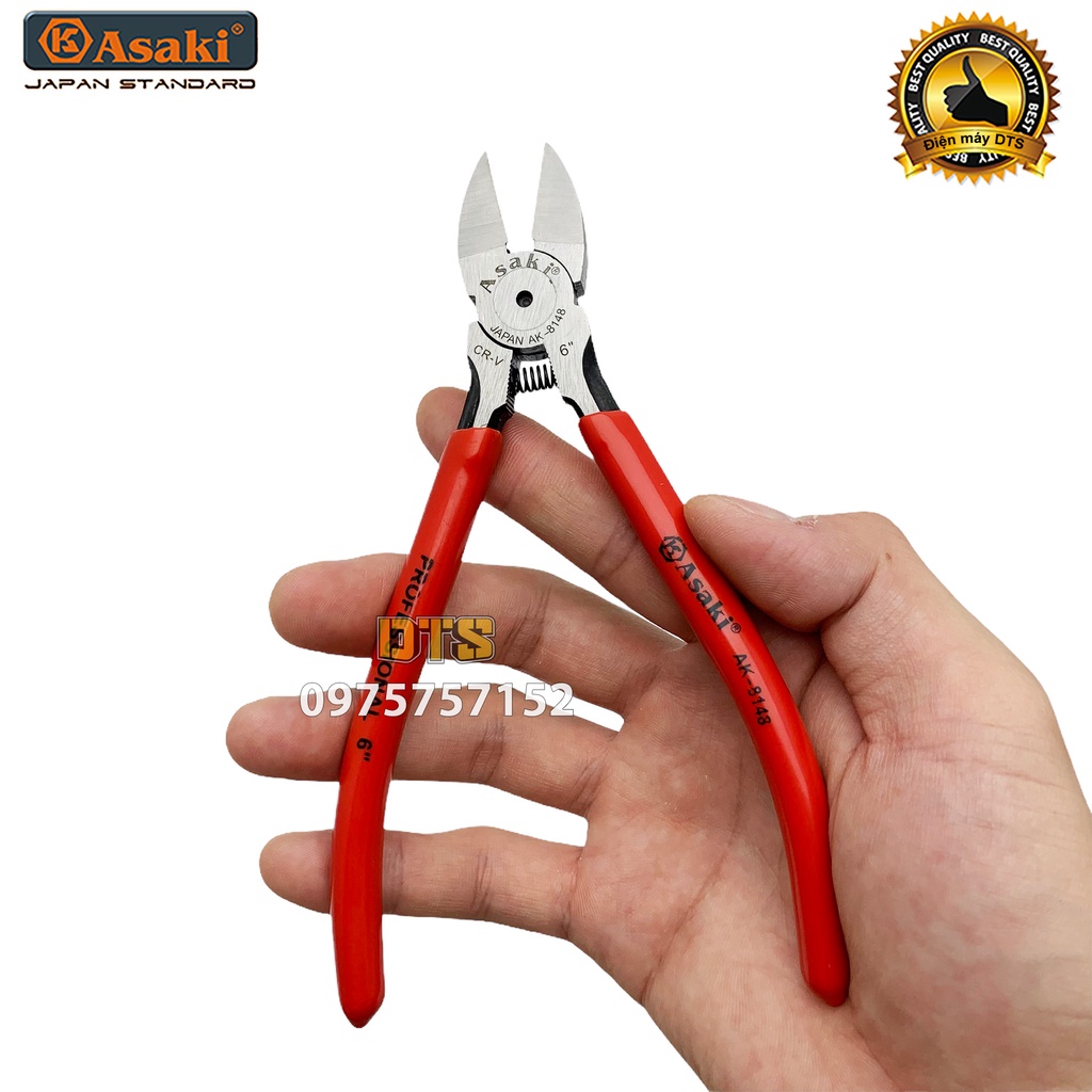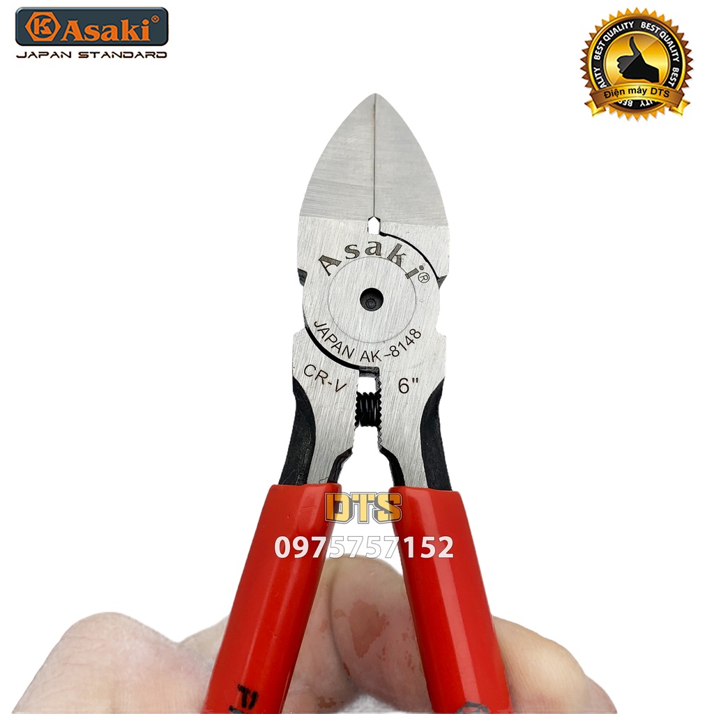 Kìm cắt kỹ thuật 6 inch Asaki JAPAN AK-8148 160mm, kềm cắt dây điện, kìm cắt nhựa bavia, lưỡi cắt nhọn vát mỏng, sắc bén