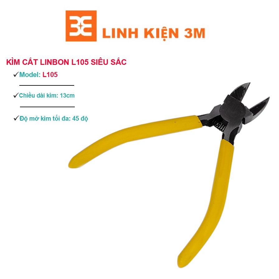 Kìm Cắt Linbon L105 được làm bằng chất liệu thép.cao cấp lưỡi kìm sắc bén chuyên dùng cắt chân linh kiện, dây điện hoặc dây đồng, dây kẽm.... Đặc biệt giữa 2 gọng kìm có lò xo, giúp việc cắt nhanh chóng nhờ lực đàn hồi.Thông Số Kỹ Thuật Kìm Cắt Linbon L105