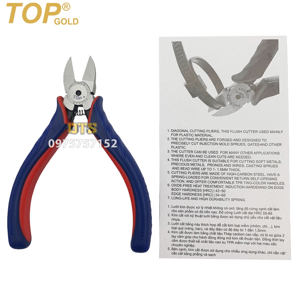 Giới thiệu Kìm cắt lưỡi bằng trợ lực kỹ thuật TOP GOLD, kìm cắt bavia nhựa, kềm cắt dây điện, kim loại mỏng, trang sức siêu sắc bén