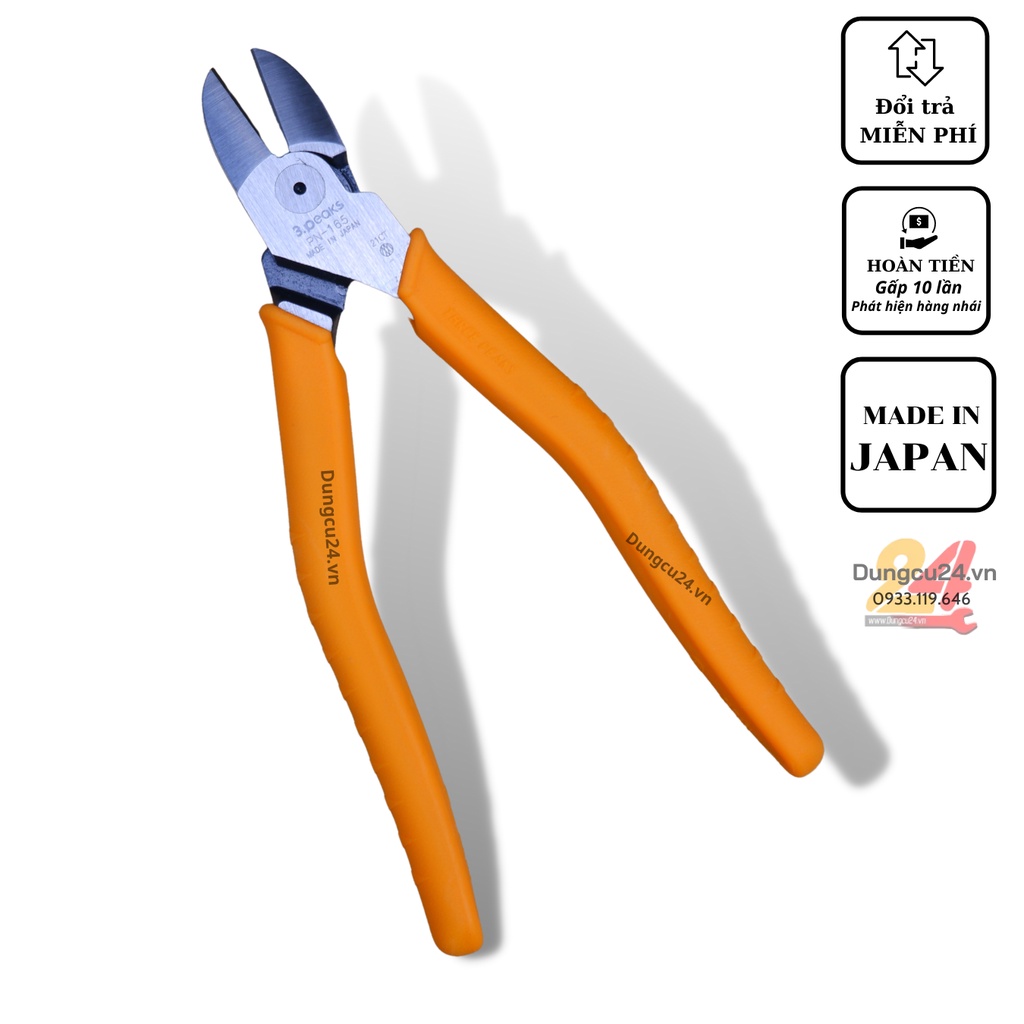 Kìm cắt nhật 3.peaks là dòng kìm hàng đầu Nhật Bản với độ cứng đạt đến 67HRC mức cao nhất của dụng cụLưỡi kìm được nhiệt luyện cao tầng và thép được làm từ thép đặc biệt nhật bản cho khả năng cắt cứng tốt, nhất là cắt dây cáp điện thoại rất dể dàng cắt ngọt và lâu cùn hơn các loại kìm khác