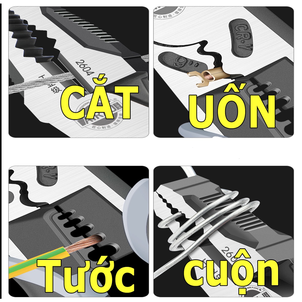 Nhà cửa & Đời sống > Dụng cụ & Thiết bị tiện ích > Dụng cụ > Kìm || Kìm cắt thép, khóa, ốc,sắt, dùng để cắt,uốn,cuộn kẹp,gai thép đa năng 9 inch, kìm bóp cos, tuốt dây điệnCòn hàng