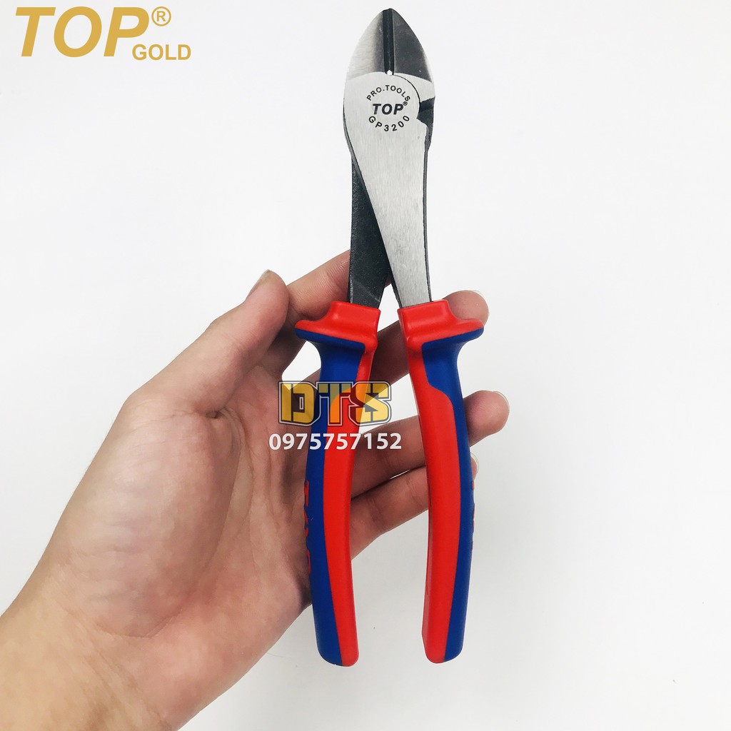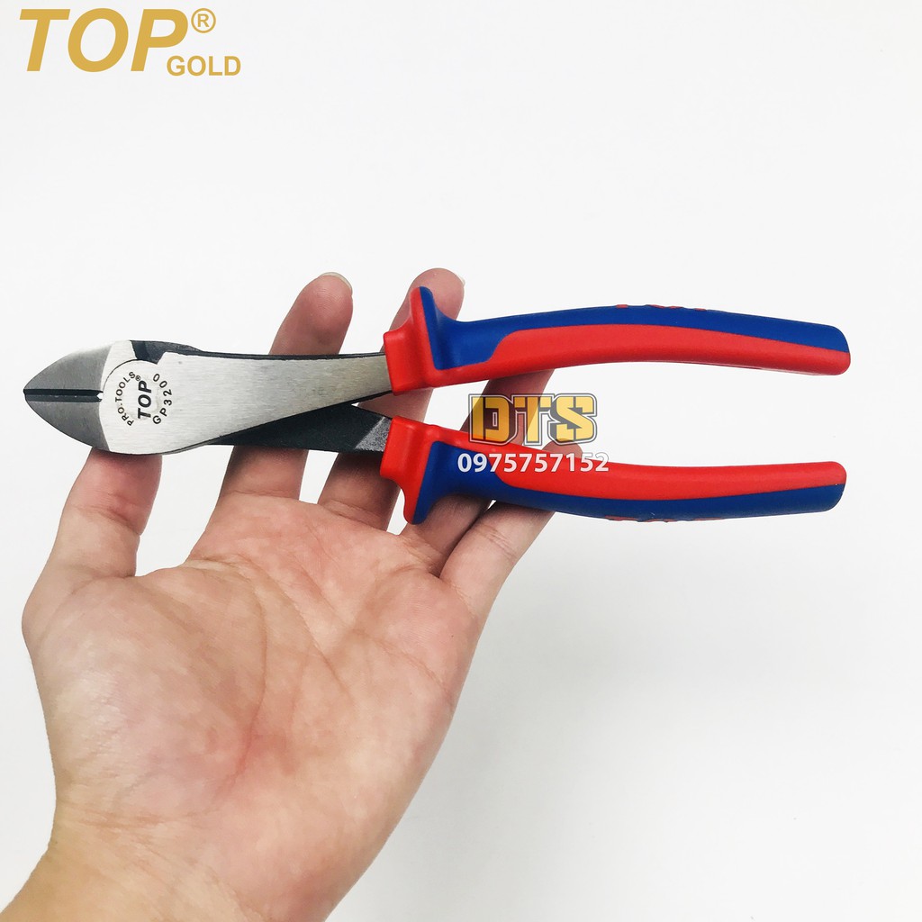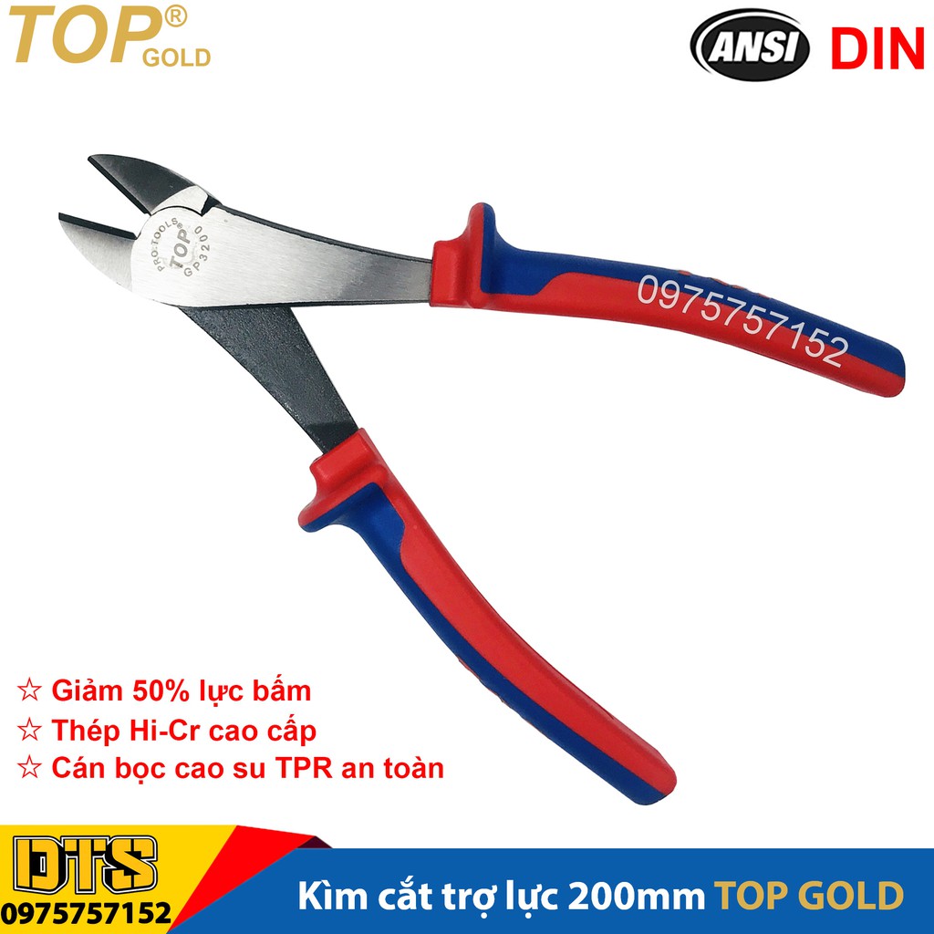 Kìm cắt trợ lực chuyên nghiệp TOP GOLD 200mm, cắt dây PIANO, thép Hi-Cr cao cấp, thiết kế cộng lực tiết kiệm 50% lực bấm