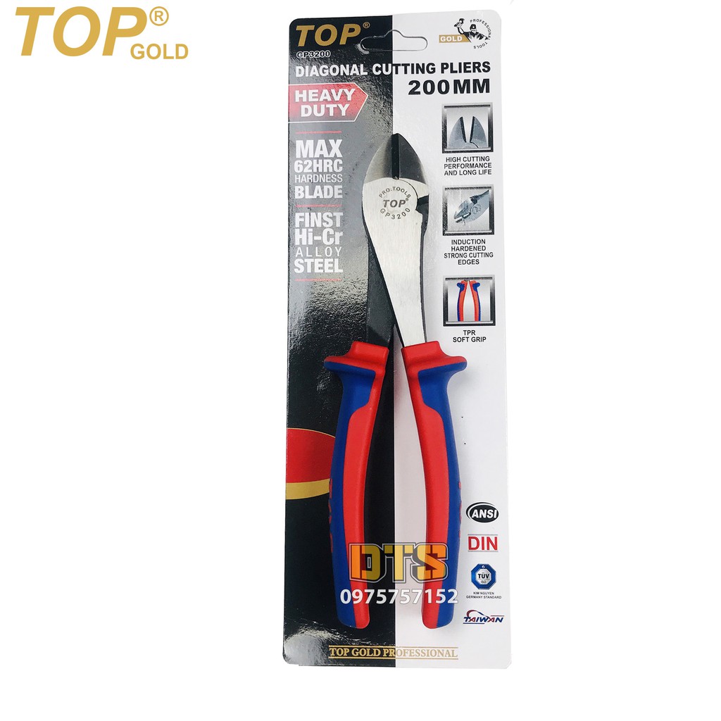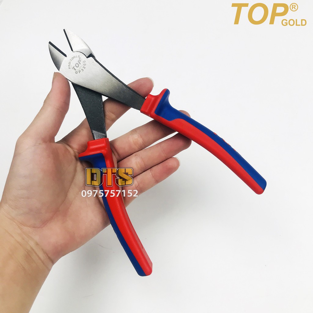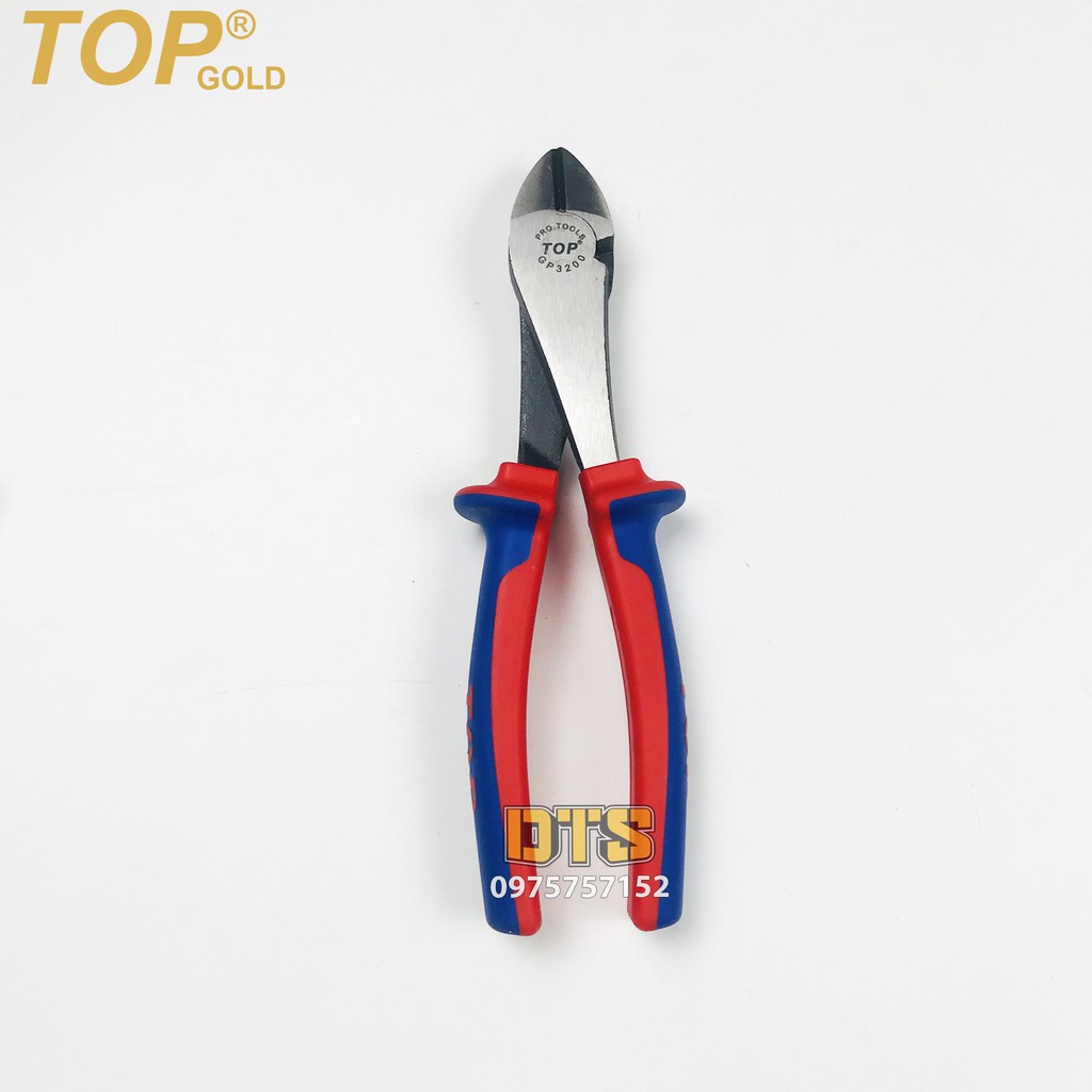 Kìm cắt trợ lực chuyên nghiệp TOP GOLD 200mm, cắt dây PIANO, thép Hi-Cr cao cấp, thiết kế cộng lực tiết kiệm 50% lực bấm