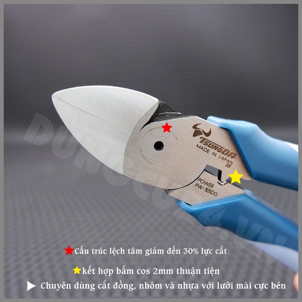 Giới thiệu Kìm cắt Tsunoda lưỡi mỏng tác động mạnh 225mm PW-305DG Nhật Bản