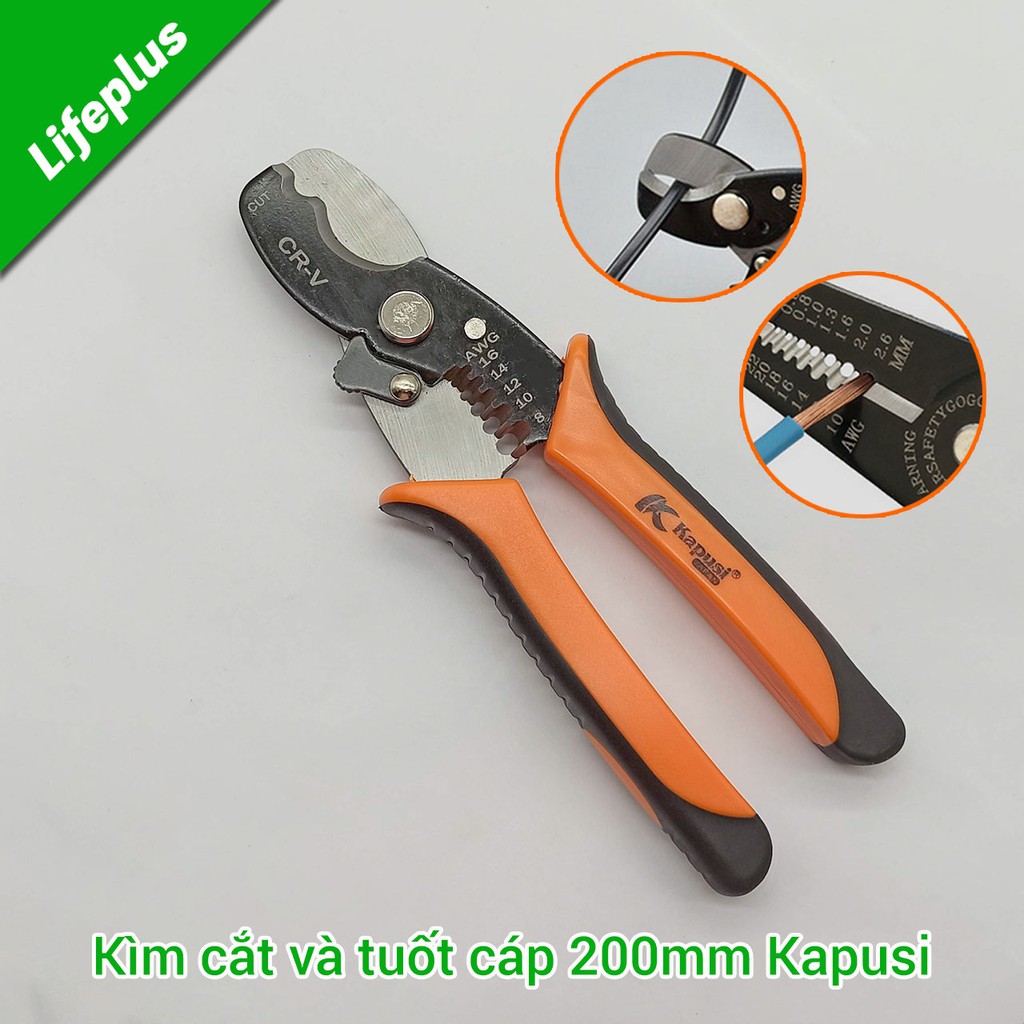 Kìm cắt tuốt cáp 200mm thép CrV công nghệ Nhật Kapusi K-9103