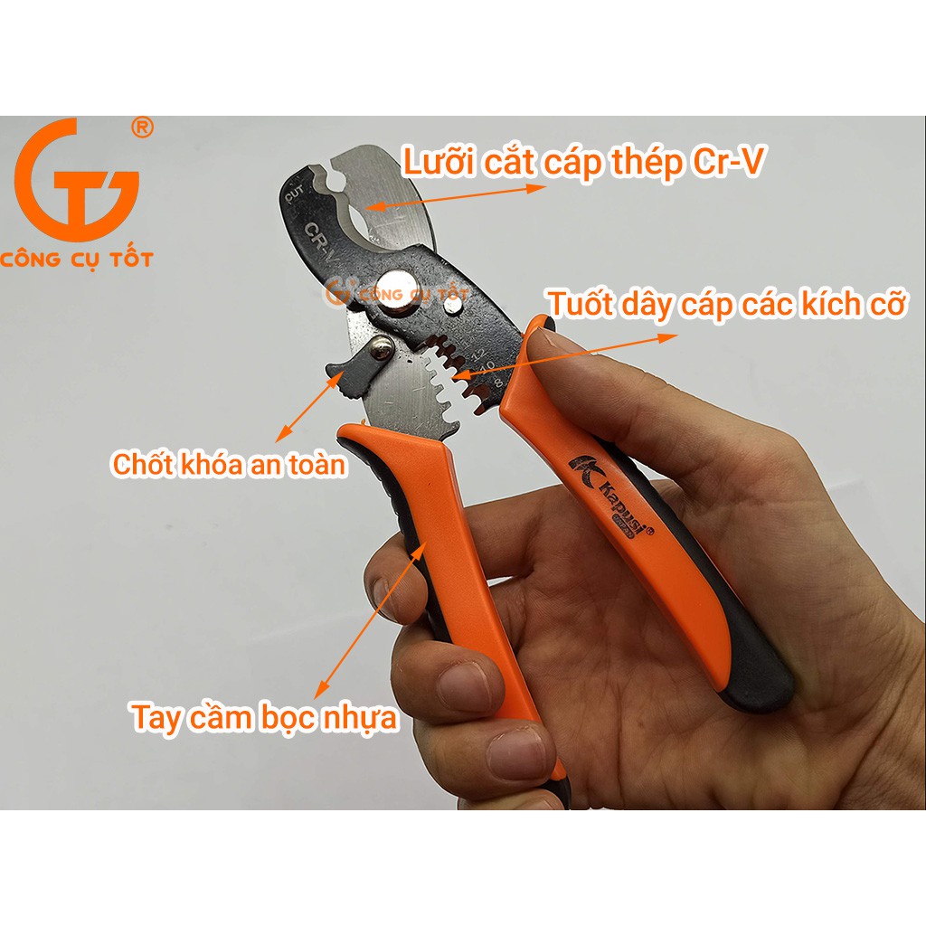 Kìm cắt tuốt cáp 200mm thép CrV công nghệ Nhật Kapusi K-9103