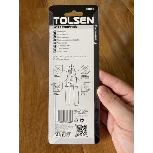Kìm cắt tuốt dây Tolsen 38051KỀM TUỐT DÂY 7 IN 1• Kích thước: 6 "/ 160mm• Chức năng tước 7 trong 1 (0,6-2,6mm)• Với kẹp và cắt