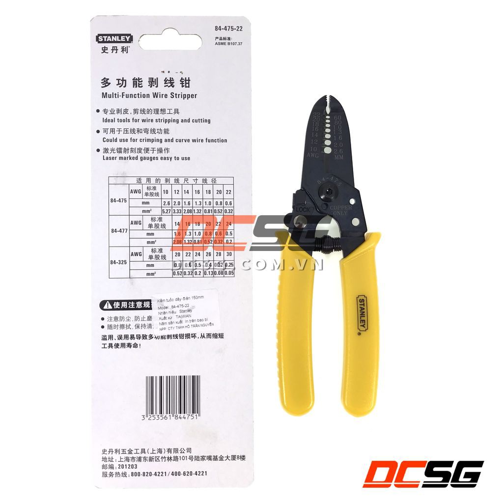 - Kìm 84-475-22 của Stanley được thiết kế lý tưởng cho việc cắt và tuốt dây điện.- Số đo hiển thị vị trí tuốt dây được khắc bằng laser chính xác và rõ ràng để thuận tiện cho việc sử dụng.