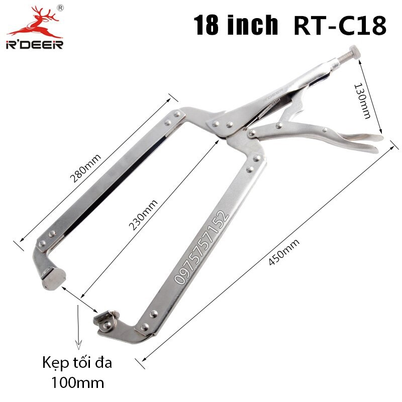 Giới thiệu Kìm chết chữ C đa năng thép Carbon cao cấp R’DEER 18 inch/ 450mm (Khả năng kẹp 100mm)