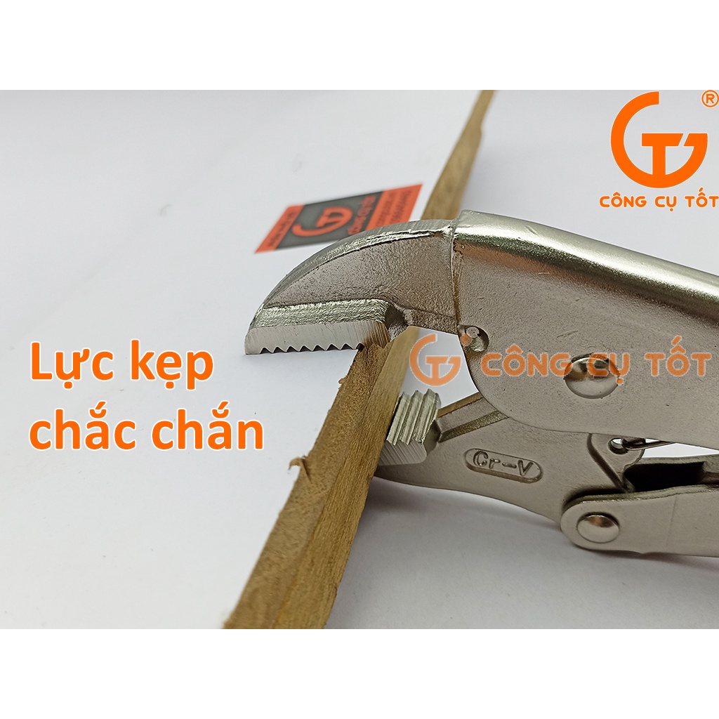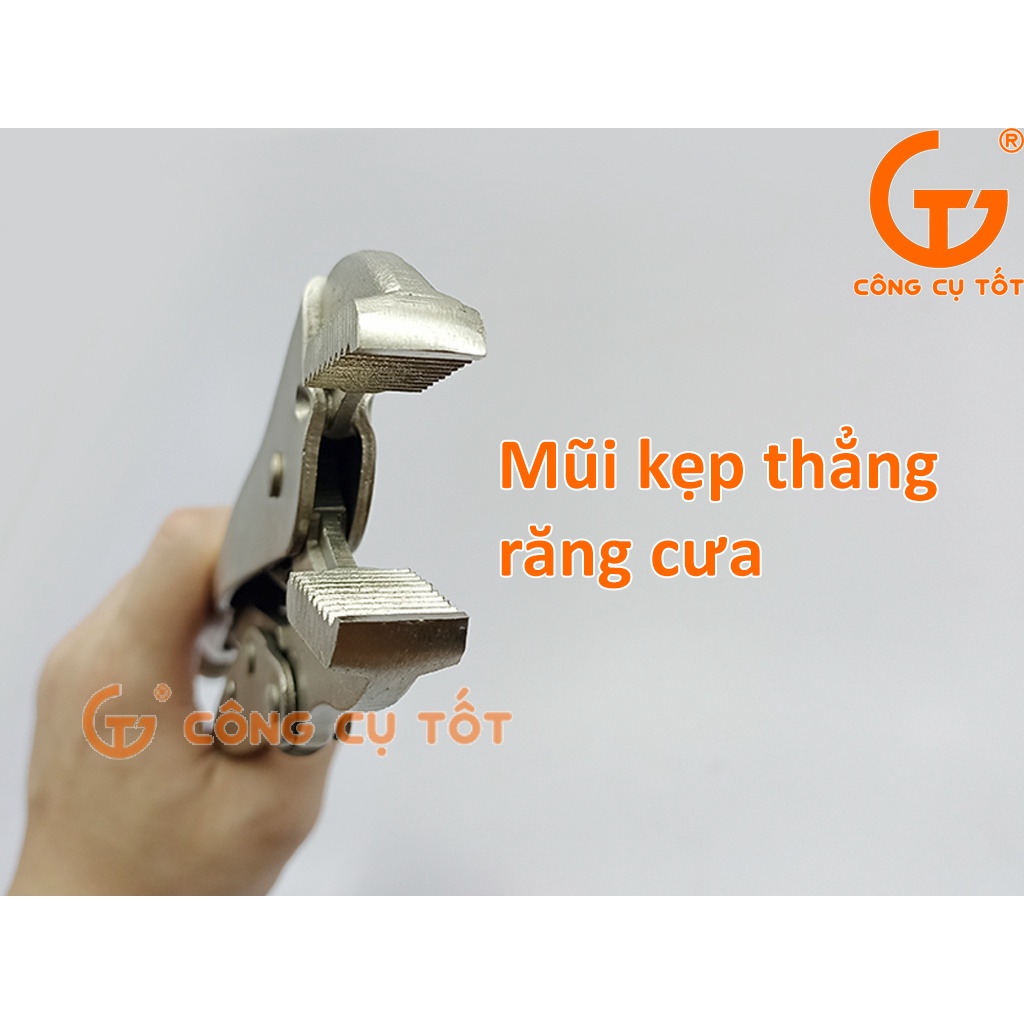 Bước 4: Dùng 2 tay bóp chặt thân kìm lại cho tới khi lẫy khóa bật lên để cố định ngàm kẹp và tiến hành thao tác kẹp giữ hoặc vặn tháo các chi tiết.
